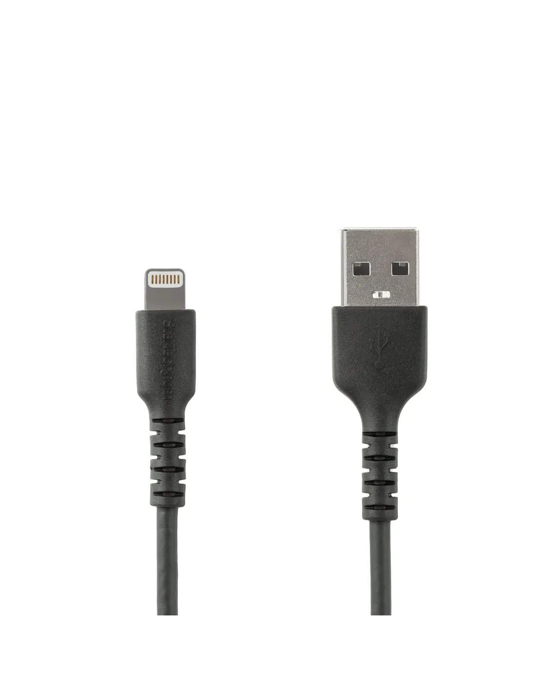 StarTech.com Cable Resistente USB-A a Lightning de 1 m Negro - Cable de Alimentación y Sincronización USB Tipo A a Lightning con Fibra de Aramida Robusta - Con Certificación MFi de Apple - iPad/iPhone 12. Longitud de cable: 1 m, Conector 1: Lightning, Conector 2: USB A. Certificados de conformidad: CE. Peso: 15 g. Cantidad por paquete: 1 pieza(s), Ancho del paquete: 75 mm, Profundidad del paquete: 125 mm. Ancho de la caja principal: 340 mm, Longitud de la caja: 400 mm, Alto de la caja principal: 280 mm