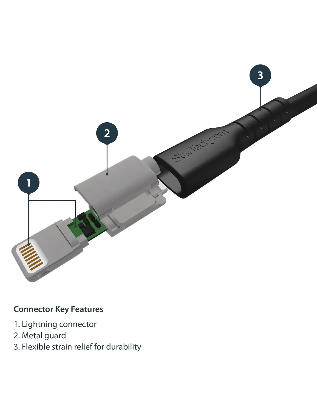 StarTech.com Cable Resistente USB-A a Lightning de 1 m Negro - Cable de Alimentación y Sincronización USB Tipo A a Lightning con Fibra de Aramida Robusta - Con Certificación MFi de Apple - iPad/iPhone 12, 1 m, Lightning, USB A, Hembra, Macho, Negro