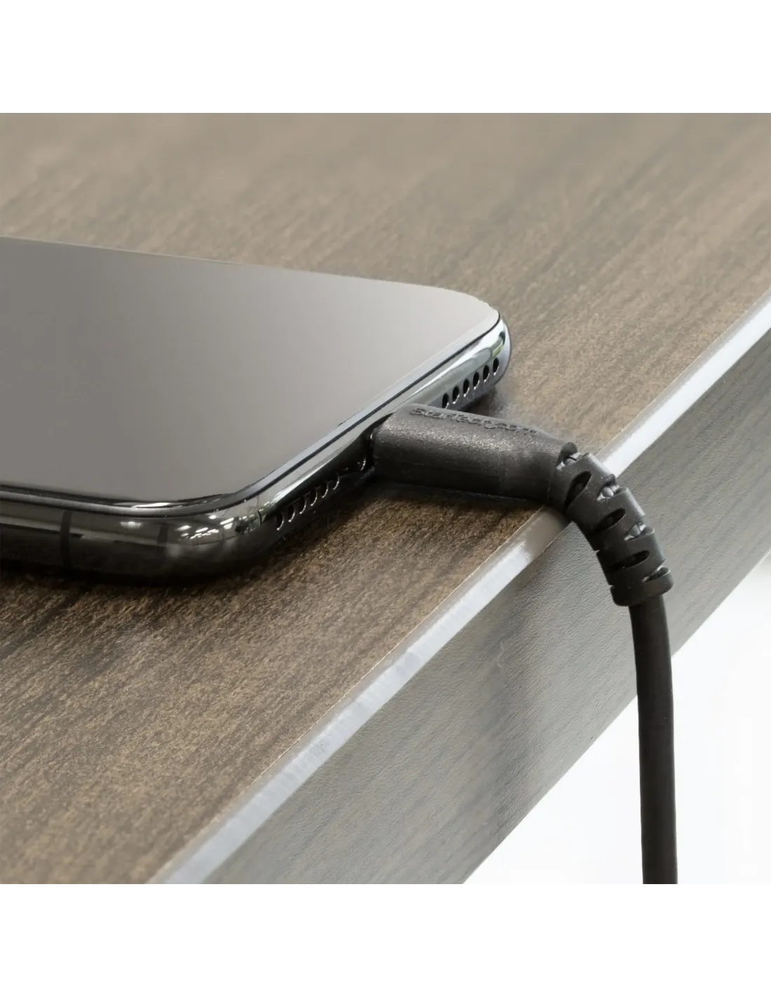 El duradero cable Lightning cuenta con un refuerzo de fibra de aramida que lo protege de la tensión de los dobleces frecuentes y las torsiones. Esto también permite que el cable se flexione sin estirarse en exceso, y refuerza el núcleo del cable.