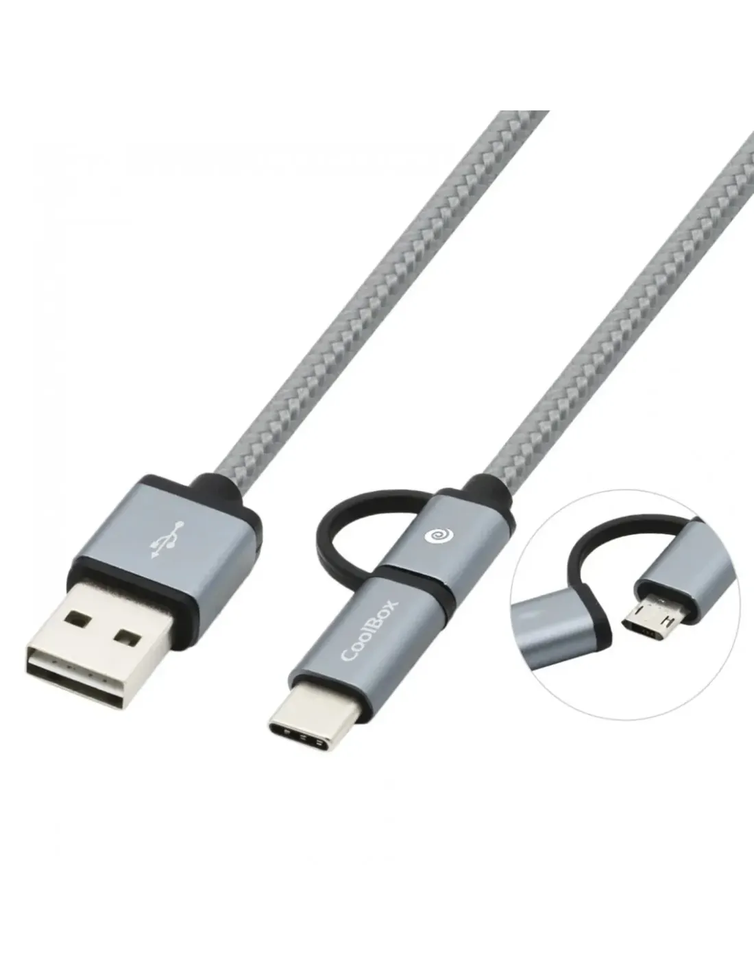 CoolBox COO-CAB-U2MC-GR. Longitud de cable: 1 m, Conector 1: USBA, Conector 2: USB C/Micro-USB B, Versión USB: USB 2.0, Rangomáximo de transferencia de datos: 480 Mbit/s, Color del producto:Gris CaracterísticasVersión USBUSB 2.0Conector 1USB AConector 2USB C/Micro-USB BGénero del conector 1MachoGénero del conector 2MachoFactor de forma de conector 1DerechoFactor de forma de conector 2DerechoConectores reversiblesSiRango máximo de transferencia de datos480 Mbit/sColor del productoGrisConectar y usar (Plug and Play)SiEmpaquetadoCantidad por paquete1 pieza(s)Detalles técnicosCertificados de sostenibilidadRoHS