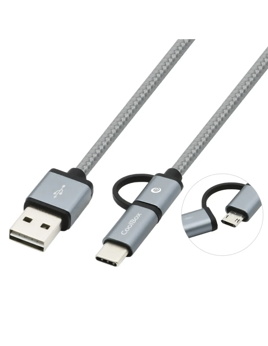 CoolBox COO-CAB-U2MC-GR, 1 m, USB A, USB C/Micro-USB B, USB 2.0, 0,48 Gbit/s, Gris