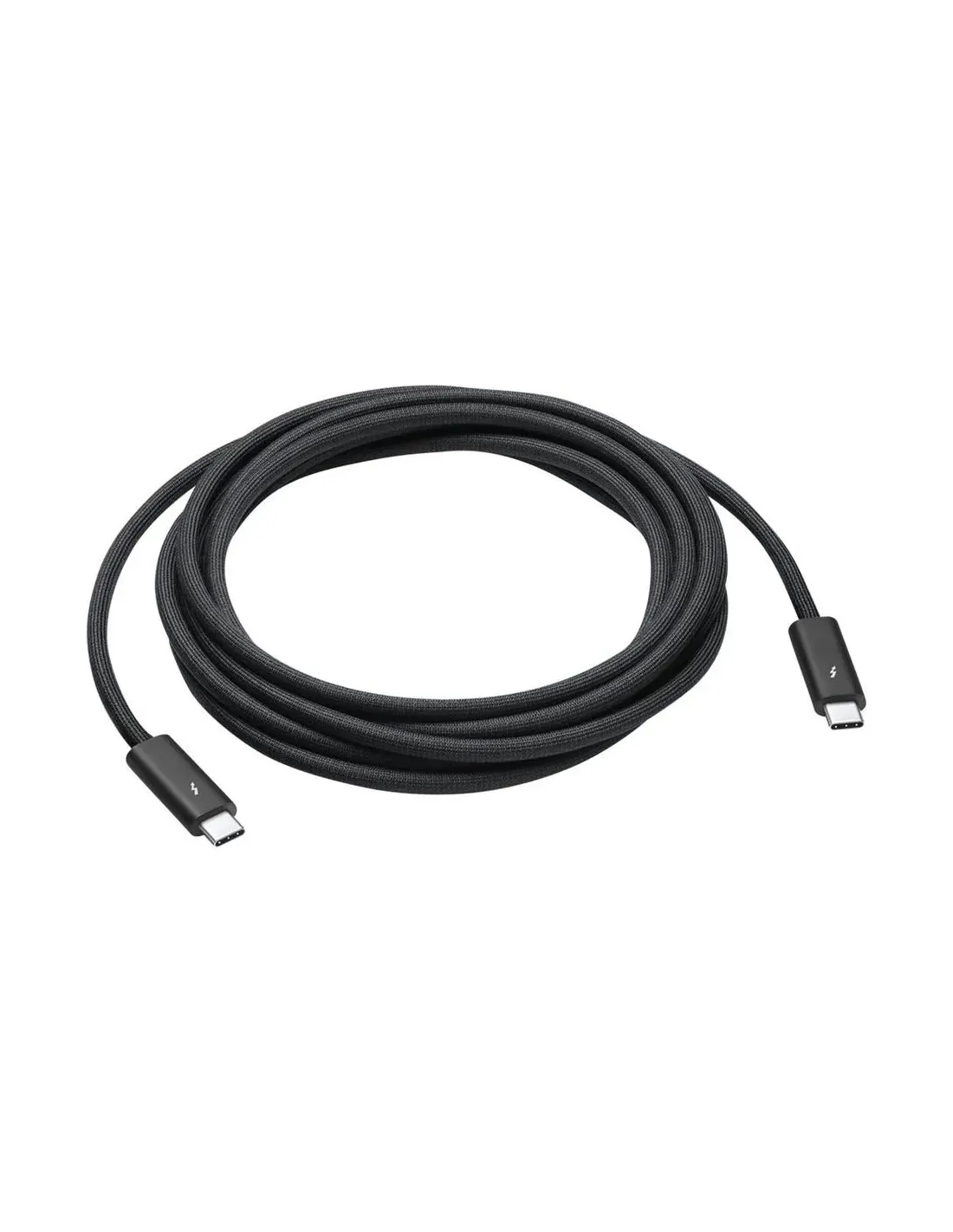 Características del Apple Thunderbolt 4 Pro Cable (3 m)El **cable Apple Thunderbolt 4 Pro de 3 metros** está diseñado para profesionales que requieren una **conectividad de alto rendimiento**, con velocidades excepcionales y compatibilidad total con dispositivos de última generación. Su diseño trenzado evita enredos y su construcción activa garantiza una transmisión de datos estable incluso a larga distancia. Ideal para configuraciones avanzadas de trabajo, edición de vídeo en alta resolución o estaciones de trabajo multidispositivo.Velocidad profesional y compatibilidad totalEste cable ofrece velocidades de transmisión de hasta 40 Gbps, lo que lo convierte en la opción perfecta para flujos de trabajo exigentes. Además, soporta hasta 100 W de suministro de energía, permitiendo cargar portátiles y otros dispositivos compatibles directamente a través del mismo cable.Transferencia de datos hasta 40 GbpsCompatible con USB4, Thunderbolt 3 y Thunderbolt 4Suministro de energía de hasta 100 WDiseño activo, resistente y sin enredosSu construcción activa y recubrimiento trenzado proporcionan una mayor durabilidad y evitan los molestos enredos. Este cable permite conexiones estables incluso en entornos con interferencias, y soporta configuraciones en cadena (Daisy Chain) para conectar varios dispositivos a la vez sin perder rendimiento.Diseño trenzado antienredosSoporta conexiones en cadena DaisyCompatible con DisplayPort y HBR3Otras especificacionesTipo de conector: USB-C macho (24 pines) en ambos extremosLongitud: 3 metrosColor: NegroGarantía: 1 año