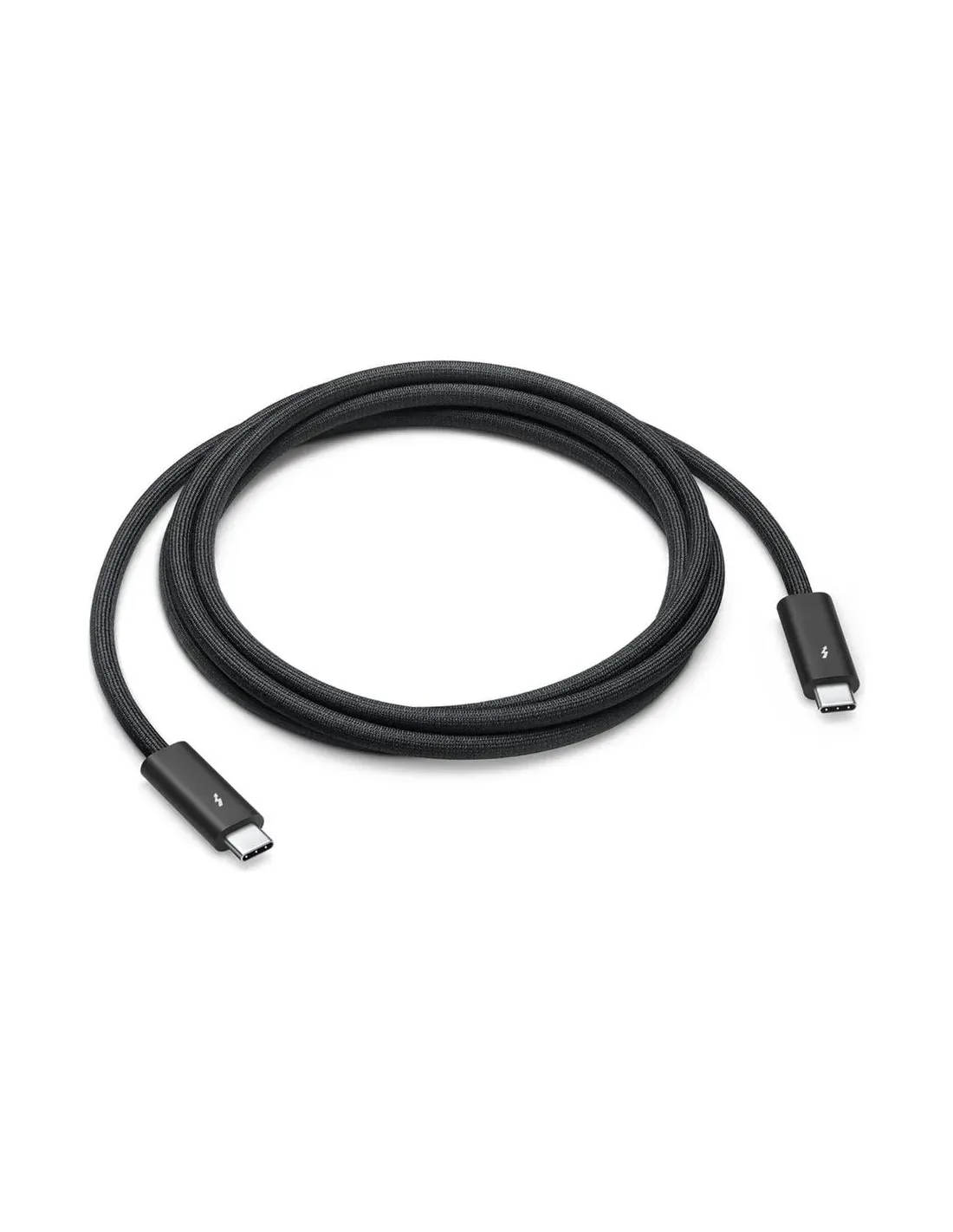 Características del Apple Thunderbolt 4 Pro Cable (1,8 m)El **Apple Thunderbolt 4 Pro de 1,8 metros** está diseñado para ofrecer una conectividad de alto rendimiento entre dispositivos USB-C, manteniendo la compatibilidad con los estándares más exigentes del ecosistema Apple y profesional. Ideal para usuarios que trabajan con estaciones de trabajo, pantallas de alta resolución y dispositivos de almacenamiento rápido, este cable combina velocidad, potencia y durabilidad en un solo accesorio.Rendimiento profesional con velocidad de hasta 40 GbpsGracias a su soporte para Thunderbolt 4, Thunderbolt 3, USB4 y USB 3.2, este cable permite una transmisión de datos ultrarrápida de hasta 40 Gbps, ideal para tareas que requieren gran ancho de banda como edición de vídeo en 4K/8K, transferencia de archivos pesados o trabajo con discos externos NVMe.Velocidad de transferencia de hasta 40 GbpsCompatible con Thunderbolt 4, Thunderbolt 3, USB4 y USB 3.2Compatible con DisplayPort y HBR3 (High Bit Rate 3)Diseño trenzado y resistente al uso intensivoEl cable está fabricado con un revestimiento trenzado resistente a enredos, lo que proporciona mayor durabilidad y facilidad de uso. Además, al ser un cable activo, garantiza un rendimiento óptimo incluso en su longitud completa de 1,8 metros. Está diseñado para funcionar con encadenamiento tipo Daisy Chain, permitiendo conectar múltiples dispositivos en serie sin pérdida de rendimiento.Diseño trenzado antienredosCable activo: máxima estabilidad en largas distanciasLongitud ideal de 1,8 m para entornos profesionalesPotencia y compatibilidad garantizadasEste cable soporta hasta 100 W de suministro de energía (Power Delivery), lo que lo hace perfecto para cargar dispositivos potentes como MacBook Pro o monitores profesionales. Su certificación lo hace totalmente compatible con los estándares más modernos, asegurando un rendimiento fiable en entornos exigentes.Suministro de energía de hasta 100 WCompatibilidad total con dispositivos USB-C y AppleIncluye garantía de 1 añoOtras especificacionesColor: NegroConectores: USB-C macho (24 pines) a USB-C macho (24 pines)Compatible con encadenamiento en serie (Daisy Chain)Peso y dimensiones: información dependiente del embalaje