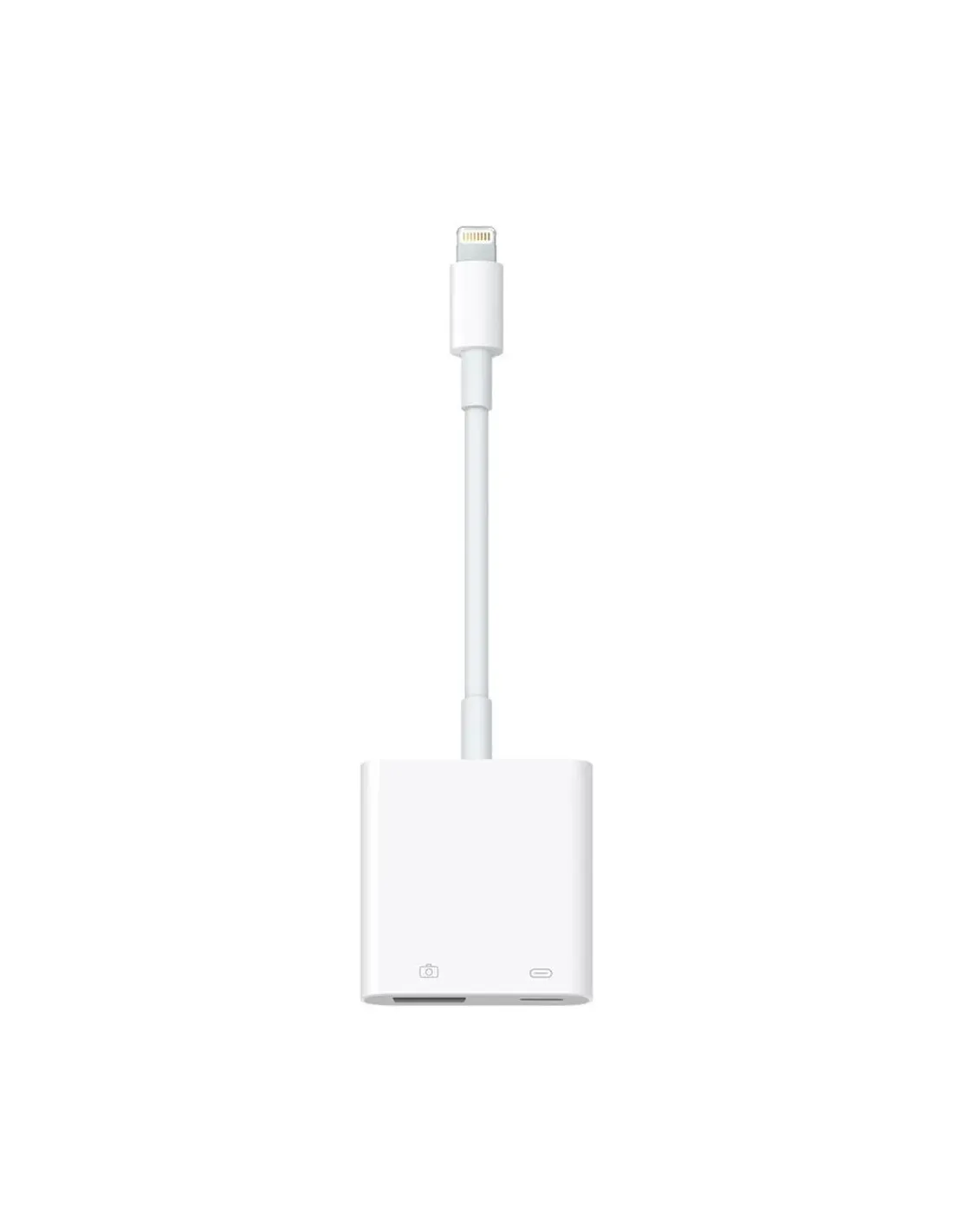 Características del Adaptador Apple Lightning a USB-AEl **adaptador Apple Lightning a USB-A** está diseñado para ofrecer una conexión directa y fiable entre tu dispositivo iOS y periféricos compatibles como cámaras digitales, teclados u otros accesorios USB. Es ideal para usuarios que necesitan **transferencias rápidas de datos** o conectar dispositivos directamente a su iPhone o iPad, manteniendo la calidad y seguridad que caracteriza a Apple.Conectividad versátil con periféricos USBEste adaptador cuenta con un puerto USB-A hembra que permite la conexión directa de periféricos comunes como **cámaras digitales, memorias USB (alimentadas externamente), teclados o interfaces MIDI**. Su diseño compacto y plug & play facilita el uso inmediato sin necesidad de configuraciones adicionales.Puerto USB-A hembra compatible con dispositivos USB 3.0Permite transferencias de datos entre cámaras y dispositivos iOSFunciona con iPhone, iPad y iPod con conector LightningDiseño Apple con garantía y compatibilidadConstruido bajo los estándares de calidad de Apple, este adaptador garantiza **una conexión segura y estable**. Además, incluye un conector Lightning macho para el dispositivo y un Lightning hembra adicional que permite mantener la carga del dispositivo mientras estás conectado.Conector Lightning macho + Lightning hembraDiseño compacto y resistenteGarantía limitada de 1 año por el fabricanteOtras especificacionesUso recomendado: Cámara, tabletaNormativa: Compatible con USB 3.0Tipo de producto: Adaptador Lightning