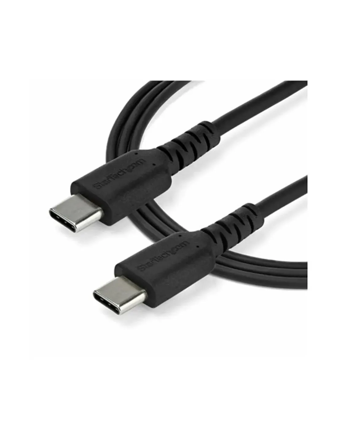 Características del StarTech.com Cable USB-C 1m (RUSB2AC1MB)El **cable USB-C a USB-C StarTech.com RUSB2AC1MB** está diseñado para ofrecer una conexión fiable, rápida y resistente para dispositivos con puerto USB-C. Ideal para portátiles, tablets y smartphones compatibles con carga de hasta 60W, este cable destaca por su **revestimiento TPE reforzado con fibra de aramida**, que proporciona mayor durabilidad frente al uso diario. Además, su diseño cumple con los estándares de Thunderbolt 3 y USB 2.0, garantizando una compatibilidad y eficiencia excepcionales.Rendimiento de carga y sincronización estableEste cable permite **transferencia de datos a velocidad USB 2.0** y **suministro de energía de hasta 60W**, lo que lo convierte en una solución ideal para cargar y sincronizar dispositivos USB-C como el iPad Pro, portátiles, o estaciones de acoplamiento compatibles.Compatible con carga rápida de hasta 60W (3A/20V)Soporta sincronización de datos USB 2.0 (480 Mbps)Conectores USB-C macho en ambos extremos (24 pines)Diseño duradero con materiales de alta calidadGracias a su construcción reforzada, este cable soporta un uso intensivo sin comprometer el rendimiento. El **doble blindaje con lámina de mylar y trenzado**, junto con el recubrimiento de **elastómero termoplástico (TPE)**, ofrecen una excelente protección frente a interferencias y tensiones mecánicas.Revestimiento TPE con fibra de aramida para mayor resistenciaDoble blindaje: mylar de aluminio + trenzadoDiseño antitorsión y alivio de tensión en los conectoresCompatibilidad y garantíaCumple con los principales estándares de calidad y compatibilidad, incluyendo **Thunderbolt 3**, **USB 2.0**, **RoHS** y **REACH**. Además, cuenta con una **garantía limitada de por vida**, respaldando su fiabilidad a largo plazo.Compatible con dispositivos USB-C, Thunderbolt 3 y DisplayPort alternativoDiseñado para modelos como: CDP2HDUACP2, SECTBLTDTGarantía limitada de por vida del fabricanteOtras especificacionesLongitud del cable: 1 metroColor: NegroPeso: 25 g (30 g con embalaje)Dimensiones del embalaje: 14.5 x 7.5 x 1.7 cmCalibre de los alambres: 22/30 AWGConectores rectos chapados en níquel