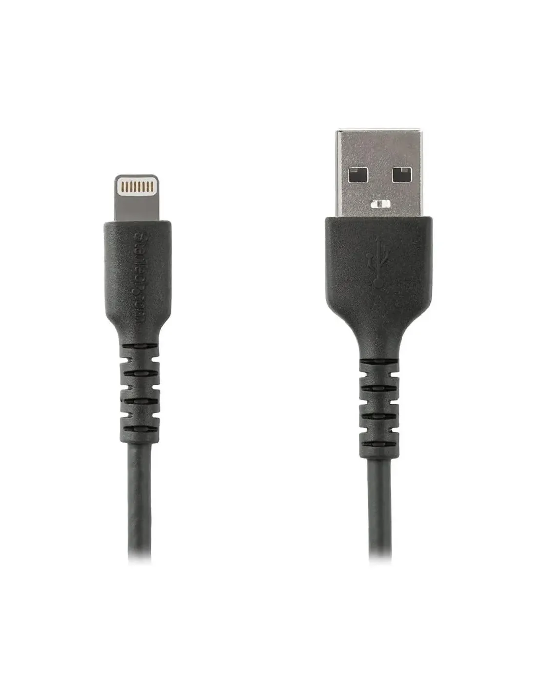 Características del StarTech.com Cable Resistente USB-A a Lightning de 1 m NegroEl **cable USB-A a Lightning de 1 metro de StarTech.com** está diseñado para usuarios que buscan una solución duradera y fiable para la carga y sincronización de dispositivos Apple. Con certificación **MFi (Made for iPhone/iPad)** y materiales de alta resistencia como la **fibra de aramida** y el revestimiento en **TPE**, este cable es ideal tanto para entornos profesionales como para el uso diario intensivo.Diseño resistente y materiales de alto rendimientoEste cable ha sido fabricado pensando en la durabilidad y el uso prolongado. Incorpora **fibra de aramida interna** para soportar tensiones mecánicas y una construcción de doble blindaje que lo protege de interferencias externas. Además, su revestimiento en **elastómero termoplástico (TPE)** le proporciona una excelente flexibilidad sin comprometer la resistencia.Material interno: fibra de aramida para refuerzo estructuralRevestimiento exterior en TPE: flexible y resistente al desgasteAlivio de tensión en los conectores para evitar roturasCompatibilidad garantizada con dispositivos AppleGracias a su **certificación MFi**, este cable garantiza total compatibilidad con dispositivos Apple que utilicen conector Lightning. Además, permite la transferencia de datos y la carga segura a través de un puerto USB-A estándar, con conectores chapados en níquel para mayor durabilidad.Conector USB-A macho (recto) a Lightning macho (recto)Compatible con iPhone, iPad y otros dispositivos con puerto LightningCertificación MFi para funcionamiento seguro y estableConstrucción blindada para una señal estableLa estructura del cable cuenta con **doble blindaje**, formado por una lámina de mylar de aluminio combinada con un trenzado exterior. Esto reduce significativamente las interferencias electromagnéticas, asegurando una **transmisión de datos más estable y fiable**.Doble blindaje: lámina de mylar de aluminio + trenzadoConectores chapados en níquel para mayor resistenciaCalibre de cable 22/32 AWG para carga eficienteOtras especificacionesColor: NegroLongitud del cable: 1 metroTipo de cable: Lightning / USBTecnología: Doble blindado