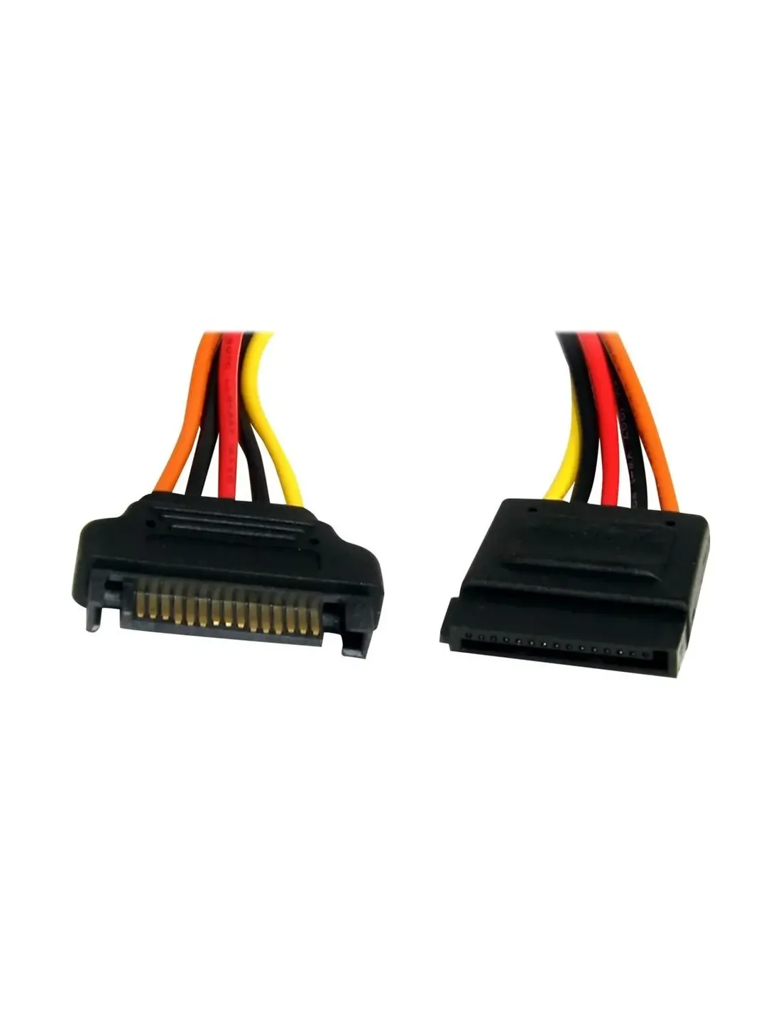 Características del StarTech.com Cable de 30 cm de Extensión de Alimentación Corriente SATAEl **cable de extensión de alimentación SATA de StarTech.com** está diseñado para ofrecer una solución sencilla y fiable cuando necesitas **ampliar la distancia entre la fuente de alimentación y los dispositivos SATA internos**, como discos duros o unidades SSD. Ideal para configuraciones con espacio limitado o cajas con una distribución compleja, este cable garantiza una conexión estable y segura sin necesidad de modificaciones adicionales.Extensión práctica para conexiones SATAGracias a su longitud de **30,5 cm**, este cable permite extender la conexión de alimentación SATA de forma fácil y ordenada dentro del chasis del ordenador. Es especialmente útil para alcanzar unidades montadas en ubicaciones alejadas o para mejorar la organización del cableado interno.Longitud: 30,5 cmEvita tensiones o dobleces en los conectores SATAFacilita una mejor gestión del cableado internoConectores de alimentación SATA hembra y machoEl cable está equipado con conectores de **alimentación SATA de 15 pines**, uno macho y otro hembra, lo que permite una conexión directa sin adaptadores adicionales. Compatible con una amplia variedad de fuentes de alimentación y dispositivos SATA.Conector 1: SATA de 15 pines machoConector 2: SATA de 15 pines hembraCompatible con discos duros, SSD y unidades ópticas SATACompatibilidad garantizada con productos StarTech.comEste cable ha sido diseñado para funcionar perfectamente con modelos específicos de la marca, asegurando **rendimiento y compatibilidad total** en entornos exigentes o profesionales.Compatible con: P/N PYO2SATA, PYO4SATA, SATAPOWADAPIdeal para integradores, técnicos y entusiastas del hardwareFabricado por StarTech.com, referente en conectividad profesionalOtras especificacionesTipo de producto: Cable alargador de alimentación SATAUso: InternoColor: Negro (según disponibilidad)
