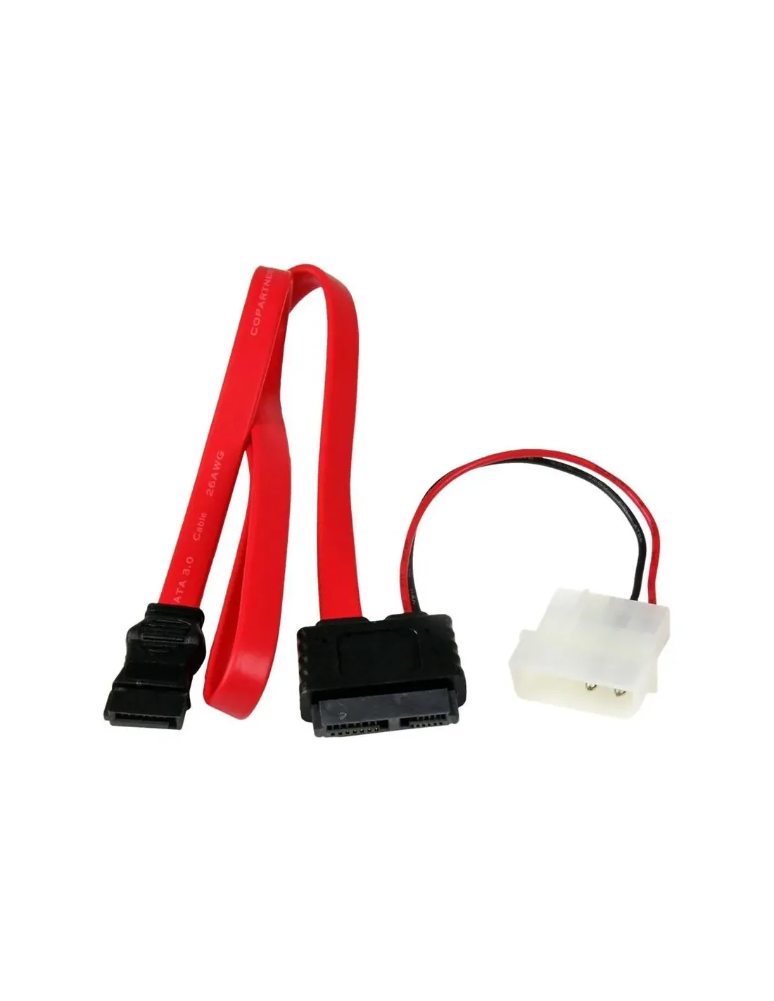 Características del Adaptador StarTech.com SATA Slimline 13 Pines a Molex LP4 y SATAEste **adaptador de cable SATA Slimline de StarTech.com** es la solución ideal para conectar unidades ópticas SATA Slimline a una fuente de alimentación estándar y a una placa base. Diseñado para entornos donde se utilizan unidades de perfil delgado, como sistemas compactos o integraciones industriales, este cable ofrece **compatibilidad, fiabilidad y facilidad de instalación** en un solo conector.Conexión eficiente para unidades SlimlineGracias a su diseño híbrido, el cable permite conectar una unidad óptica con conector **SATA Slimline de 13 pines** directamente a la **placa base (SATA de 7 pines)** y a una fuente de alimentación mediante **conector Molex LP4**. Esto lo convierte en una herramienta imprescindible para actualizaciones, reemplazos o configuraciones personalizadas.Conector Slimline SATA de 13 pines - hembraConector SATA de 7 pines - hembraConector de alimentación LP4 (Molex) de 4 pines - machoDiseño duradero y orientado a la compatibilidadCon una longitud de **50,8 cm**, este cable rojo está fabricado bajo estándares de calidad exigentes, cumpliendo con la normativa **RoHS**, y es compatible con velocidades de interfaz **SATA 1.5 Gb/s, 3 Gb/s y 6 Gb/s**. Ideal tanto para integradores como para usuarios avanzados que requieran una conexión estable y segura para dispositivos ópticos internos.Longitud del cable: 50,8 cmVelocidades soportadas: SATA 150/300/600Normativa: cumplimiento RoHSInstalación rápida y sin complicacionesEl adaptador está listo para usarse sin necesidad de herramientas especiales ni configuraciones adicionales. Conecta, asegura y empieza a trabajar. Su color rojo facilita la identificación entre otros cables en entornos con múltiples conexiones.Fácil instalación Plug & PlayDiseño flexible y resistenteColor rojo para identificación rápidaOtras especificacionesTipo de cable: SATA para dispositivos de almacenamientoUso recomendado: Unidades ópticas Slimline