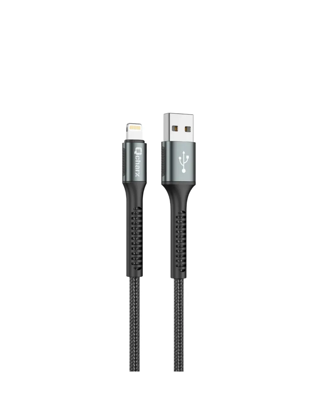 Cable qcharx prague usb a lightning 3a - 1 m - aleación de aluminio negro cordón de tela suave