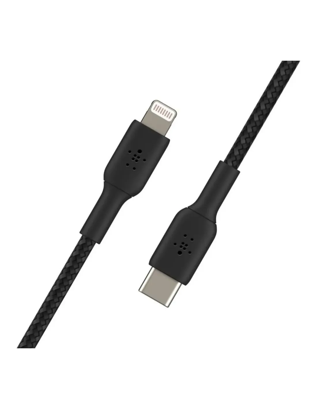 Características del Cable Belkin CAA004BT1MBK USB-C a Lightning Boost Charge 1 m NegroEl **cable Belkin CAA004BT1MBK** está diseñado para ofrecer una conexión rápida, segura y duradera entre dispositivos **Lightning y USB-C**. Con una longitud de **1 metro** y un diseño **trenzado de alta resistencia**, es ideal para cargar y sincronizar tu iPhone, iPad u otros equipos compatibles de forma fiable. Además, cuenta con certificación **MFi de Apple**, garantizando plena compatibilidad y tranquilidad de uso.Diseño trenzado duraderoEl recubrimiento trenzado no solo aporta un aspecto elegante, sino que también mejora la **resistencia al desgaste diario**, evitando enredos y prolongando la vida útil del cable. Perfecto para acompañarte en el día a día sin preocupaciones.Longitud de 1 m, práctico para uso en casa, oficina o viajesColor negro sobrio y eleganteEstructura reforzada para mayor durabilidadConexión fiable y certificación MFiEste cable está certificado por Apple (**MFi**), lo que garantiza un **funcionamiento óptimo con dispositivos iPhone, iPad y iPod**. Compatible con carga rápida cuando se utiliza con cargadores USB-C PD adecuados.Conector 1: Lightning (macho, recto)Conector 2: USB-C (macho, recto)Tecnología Plug and Play: conectar y usar sin configuraciónVersatilidad y compatibilidadGracias a su diseño universal, este cable resulta ideal tanto para **cargar dispositivos** como para **transferir datos de forma rápida**. Su longitud está pensada para ofrecer movilidad sin enredos y mantener tu espacio ordenado.Compatible con dispositivos Apple con puerto LightningAdmite carga y sincronización de datosFunciona con adaptadores de corriente USB-C de Apple y tercerosOtras especificacionesCantidad por paquete: 1 piezaCódigo SA: 85177900