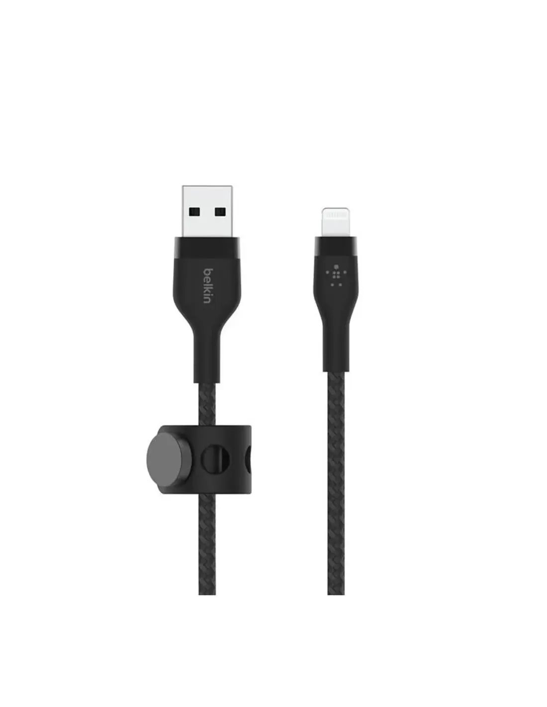 Características del Cable Belkin Caa010ds3mbk Lightning USB-A Trenzado Boost Charge 3m NegroEl cable Belkin Boost Charge Pro Flex Lightning a USB-A de 3 metros está diseñado para ofrecer durabilidad extrema y un rendimiento fiable en la carga y sincronización de tus dispositivos Apple. Gracias a su exterior de nailon trenzado combinado con tecnología de silicona interna, este cable proporciona una resistencia muy superior a la de los cables convencionales, sin renunciar a la flexibilidad y al diseño premium.Durabilidad superior y diseño premiumEste cable ha sido sometido a pruebas que garantizan una resistencia de hasta 30.000 doblamientos, lo que lo convierte en una solución duradera para el uso diario. Además, cuenta con cabezales de aluminio satinado que aportan un extra de solidez y un acabado elegante.Exterior trenzado de nailon y tecnología interna de siliconaSoporta hasta 30 veces más que los cables estándarConectores de aluminio satinado para mayor resistenciaCarga y sincronización segurasSu certificación MFi garantiza plena compatibilidad y seguridad con dispositivos Apple con puerto Lightning, permitiendo cargar y sincronizar música, fotos y datos de manera eficiente y estable.Certificación oficial MFi (Made for iPhone/iPad)Compatible con iPhone, iPad y otros dispositivos con conector LightningTransferencia de datos fiableComodidad en el uso diarioCon sus 3 metros de longitud, este cable ofrece una gran libertad de movimiento para cargar tus dispositivos desde cualquier lugar. Además, su diseño flexible evita enredos y torsiones, mientras que el sistema de gestión magnética facilita el almacenamiento ordenado.Longitud extra de 3 m para mayor alcanceDiseño antienredos y resistente a doblecesIncluye correa con clip magnético y placa adhesiva para organizar el cableOtras especificacionesTipo de cable: carga y sincronizaciónConector 1: USB Tipo A (macho)Conector 2: Lightning (macho)Materiales: nailon trenzado (exterior) y silicona (interior)Color: negroDimensiones del paquete: 10,5 x 8 x 4 cm (aprox.)Peso del producto: 180 g (aprox.)Incluye: cable + correa magnética + placa adhesiva