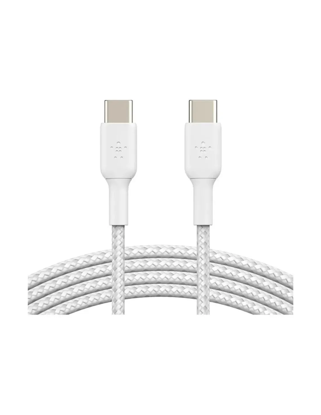 Características del Cable Trenzado Belkin CAB004BT1MWH2PK Boost Charge USB-C a USB-C 1m (Pack de 2)El pack de 2 cables trenzados Belkin Boost Charge de 1 metro está diseñado para ofrecerte una conexión fiable, duradera y rápida entre dispositivos con puerto USB-C. Ideal tanto para cargar como para transferir datos, es compatible con una amplia gama de dispositivos Android, iPad, MacBook e incluso con la serie iPhone 15, gracias a su soporte para USB Power Delivery de hasta 60 W.Diseño trenzado para mayor durabilidadEstos cables cuentan con una cubierta exterior de nylon trenzado, lo que les aporta una resistencia superior al desgaste del uso diario. Su diseño elegante en color blanco y conectores USB-C simétricos y rectos garantizan comodidad y fiabilidad.Material exterior: Nylon trenzadoConectores USB-C macho (ambos extremos)Diseño: Cable redondo y flexibleCarga rápida y transferencia de datos eficienteGracias a su compatibilidad con USB 2.0 y USB Power Delivery de hasta 60 W, este cable permite cargar dispositivos de forma rápida y segura. Además, facilita la transferencia de datos con una velocidad máxima de hasta 480 Mbit/s.Velocidad de transferencia: hasta 0,48 Gbit/sCompatible con carga rápidaCompatible con USB Power Delivery (hasta 60 W)Alta compatibilidad con dispositivos actualesEste pack está optimizado para funcionar con una gran variedad de dispositivos con puerto USB-C, incluidos portátiles, tabletas y smartphones de las marcas más populares.Compatible con iPhone 15, iPhone 15 Pro/Plus/Pro MaxiPad Pro, iPad Air, iPad Mini (modelos con USB-C)MacBook Air/Pro, Google Pixel, Samsung Galaxy S20/S21/S22/S23 y másPráctico pack de dos unidadesIncluye 2 cables de 1 metro, ideales para tener uno en casa y otro en el trabajo, o para usar simultáneamente en distintos dispositivos. Además, cuenta con certificación USB-IF, que garantiza su fiabilidad y seguridad.Longitud: 1 metro por cableCantidad en el paquete: 2 unidadesCertificado USB-IFOtras especificacionesPlug and Play: SíDimensiones del cable: 101,3 mm x 26,2 mm x 101,9 mmPeso del producto: 74,84 gDimensiones del paquete: 121,6 mm x 31,4 mm x 122,2 mmPeso del paquete: 89,81 g