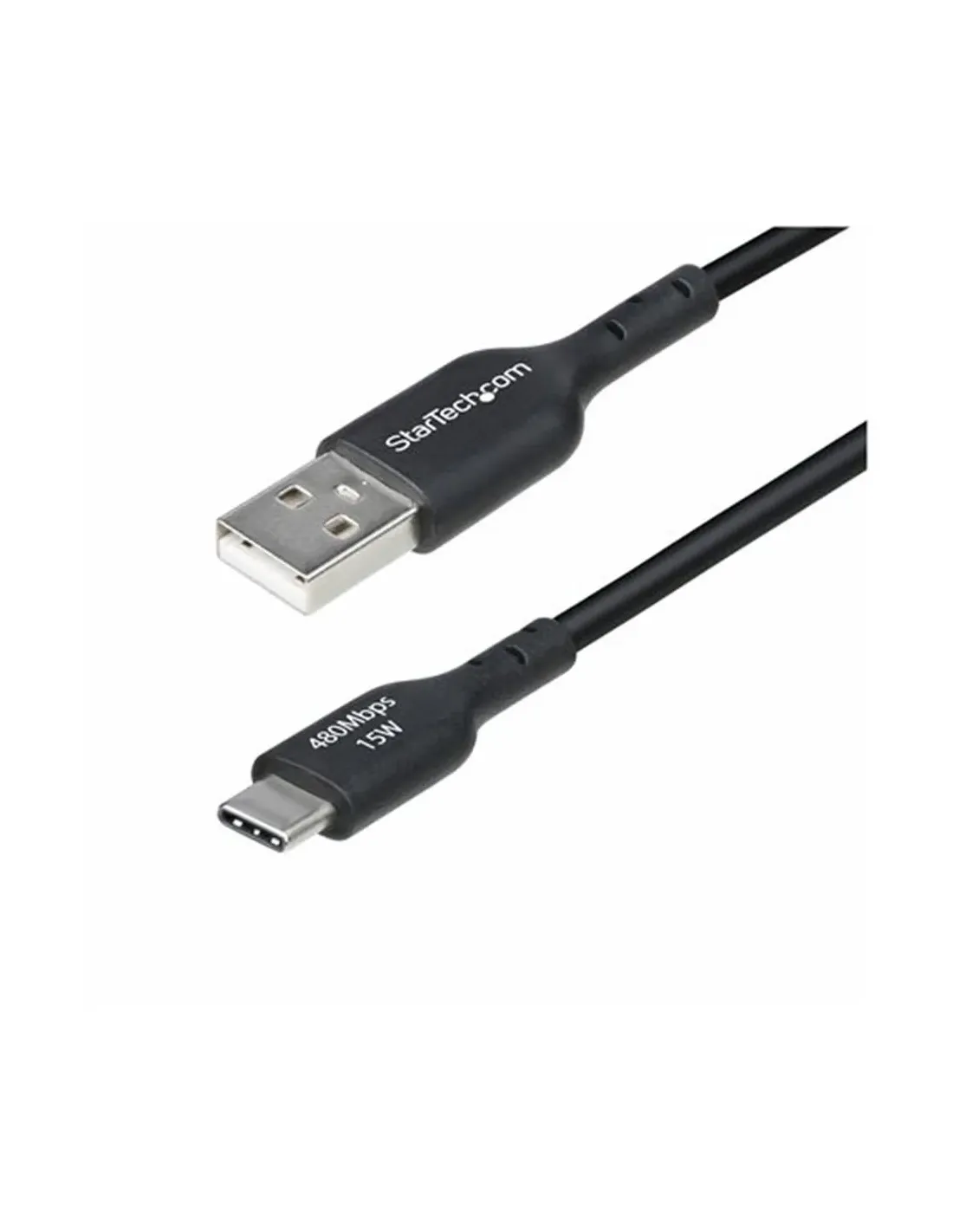 Características del StarTech.com Cable USB-A a USB-C 2m (6.6ft)El cable StarTech.com USB-A a USB-C de 2 metros es una solución fiable para la carga y sincronización de dispositivos con conector USB-C. Diseñado para ofrecer durabilidad, rendimiento estable y protección frente a interferencias, es ideal tanto para uso doméstico como profesional, especialmente cuando necesitas mayor alcance sin perder calidad de conexión.Carga eficiente y transferencia de datos estableEste cable permite una carga rápida de hasta 15W (3A) y una velocidad de transferencia de datos de hasta 480 Mbps, garantizando un funcionamiento fluido para dispositivos compatibles. Es perfecto para smartphones, tablets y otros periféricos USB-C.Corriente nominal de 3 A (hasta 15W)Velocidad de transferencia de hasta 480 MbpsCompatible con estándares USB 2.0Diseño resistente y duraderoFabricado con material TPE (elastómero termoplástico), este cable ofrece una excelente flexibilidad y resistencia al desgaste. Además, cuenta con alivio de tensión reforzado y una vida útil de hasta 10.000 inserciones, lo que garantiza un uso prolongado sin deterioro.Revestimiento en TPE flexible y resistenteVida útil de 10.000 insercionesDiámetro de 3,5 mm para mayor robustezProtección avanzada y construcción de calidadEl cable incorpora blindaje con lámina de mylar de aluminio y trenzado que reduce las interferencias electromagnéticas (EMI), asegurando una señal estable. Además, sus conectores chapados en níquel mejoran la durabilidad y la calidad de la conexión.Blindaje EMI con aluminio y trenzadoConectores chapados en níquelCalibrador 22/30 AWGConectividad universal y mayor comodidadCon una longitud de 2 metros, este cable proporciona mayor libertad de uso en diferentes entornos. Su diseño USB-A a USB-C macho lo hace compatible con una amplia gama de dispositivos modernos.Conector USB-A machoConector USB-C macho (24 pines)Longitud de 2 metros para mayor alcanceOtras especificacionesColor: NegroPeso: 45 gMaterial de blindaje: Lámina de mylar de aluminio con trenzadoSin halógenosCable pasivo con función de carga y sincronizaciónCompatible con USB Fast ChargeCumple con normativa RoHSDimensiones del embalaje: 22 x 12,8 x 1,4 cmPeso del embalaje: 50 g