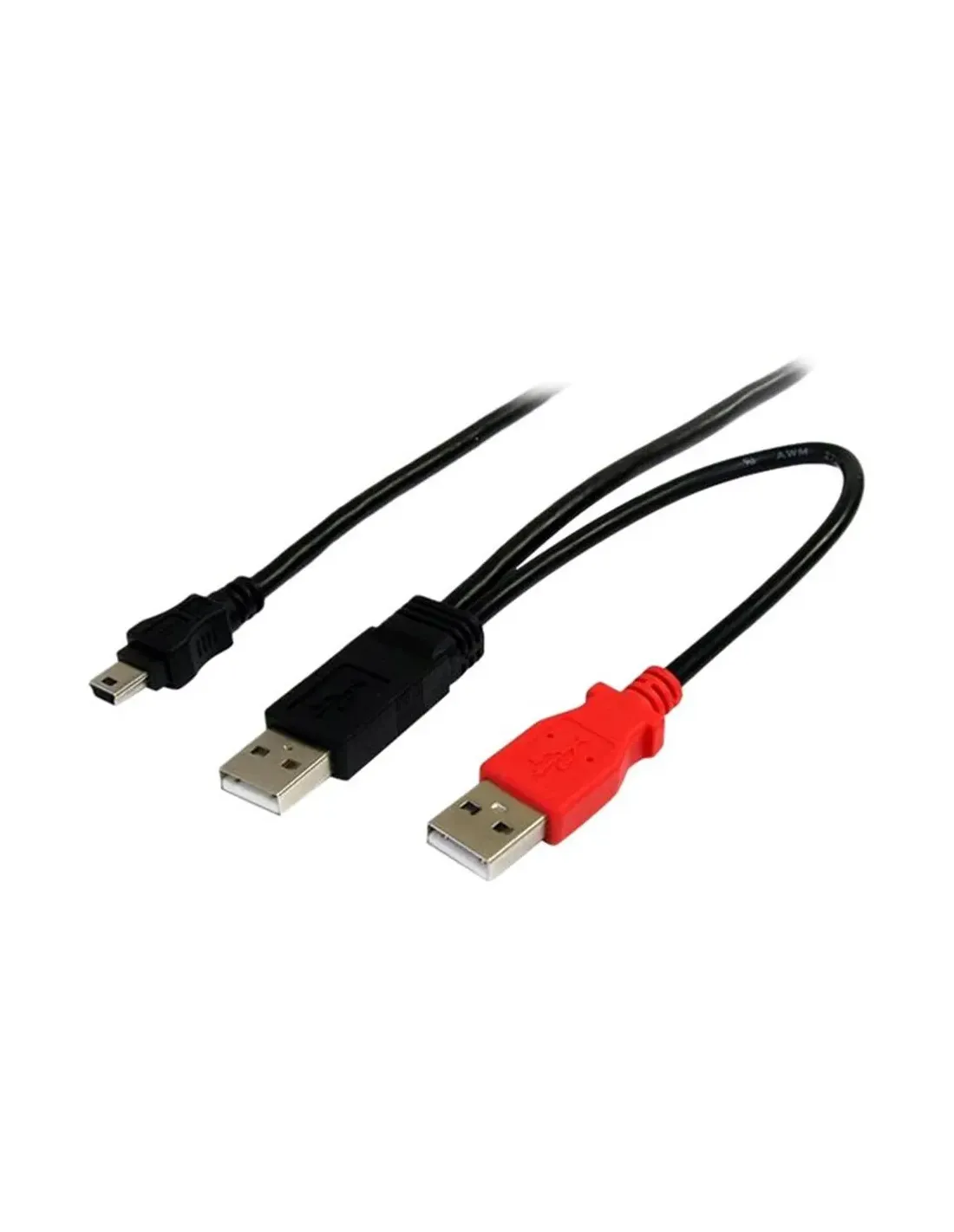 Características del StarTech.com Cable USB 2.0 en Y para Discos Duros Externos 1,8 mEl cable USB 2.0 en Y de StarTech.com está diseñado para proporcionar una conexión estable y alimentación adicional a dispositivos que requieren más energía, como discos duros externos. Con una longitud de 1,8 metros, ofrece mayor flexibilidad de uso, siendo una solución práctica para mejorar el rendimiento y la fiabilidad de tus dispositivos USB.Diseño en Y para alimentación adicionalEste cable incorpora un diseño en Y con doble conector USB A, permitiendo extraer energía de dos puertos USB simultáneamente. Esto resulta especialmente útil para discos duros externos o dispositivos que necesitan un extra de alimentación para funcionar correctamente.2 conectores USB Tipo A machoAlimentación adicional mediante doble puerto USBIdeal para discos duros externos y carcasas USBConectividad fiable y compatibilidad universalEquipado con un conector Mini USB tipo B, este cable garantiza una conexión estable y compatible con múltiples dispositivos. Cumple con el estándar USB 2.0, asegurando una transmisión de datos eficiente en equipos compatibles.Conector Mini USB tipo B machoCompatible con USB 2.0Cumplimiento de normativa RoHSLongitud óptima y construcción duraderaGracias a su longitud de 1,8 metros, este cable ofrece libertad de instalación y comodidad en el uso diario. Su fabricación con calibre 24/28 AWG contribuye a una transmisión estable tanto de energía como de datos.Longitud: 1,8 mCalibre de cable 24/28 AWGColor negroCompatibilidad con dispositivos StarTech.comEste cable ha sido diseñado para funcionar perfectamente con diferentes soluciones de la marca, como carcasas para discos duros, unidades ópticas externas y adaptadores USB, garantizando un rendimiento fiable en cada uso.Compatible con carcasas de disco duro USB 2.0Compatible con unidades ópticas externasCompatible con adaptadores USB StarTech.com