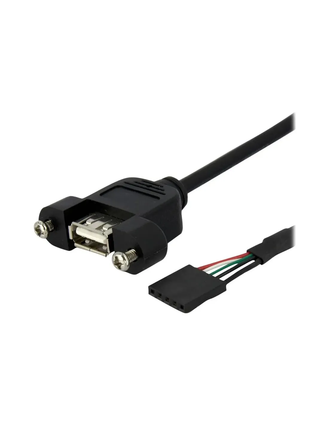 Características del StarTech.com Cable USB 2.0 de Montaje en Panel 30cmEl cable USB 2.0 de montaje en panel StarTech.com es una solución práctica y fiable para extender una conexión USB interna hacia el exterior de tu equipo. Diseñado para integración en cajas de PC, servidores o sistemas personalizados, permite disponer de un puerto USB accesible sin necesidad de adaptadores adicionales. Su longitud de 30 cm y su diseño robusto lo convierten en una opción ideal para entornos profesionales y montajes a medida.Conexión interna a externa eficienteEste cable permite transformar un conector USB interno de la placa base en un puerto USB Tipo A externo, facilitando la conexión de periféricos de forma cómoda y accesible. Es perfecto para configuraciones donde se requiere ampliar la conectividad sin modificar la estructura del sistema.Conector USB 2.0 de 5 pines (hembra) para placa baseSalida USB Tipo A de 4 clavijas (hembra)Compatible con estándares USB 2.0 de alta velocidadDiseño para montaje en panelSu formato está pensado para instalación en paneles o chasis, incorporando tornillos de mariposa que permiten una fijación segura y sencilla. Esto garantiza una conexión estable y duradera, incluso en entornos de uso intensivo.Montaje en panel con tornillos de mariposaInstalación rápida y seguraIdeal para cajas de PC y sistemas personalizadosConstrucción fiable y compatibilidad garantizadaFabricado con materiales de calidad, este cable ofrece rendimiento estable y durabilidad. Además, cumple con normativas clave como USB 2.0 y RoHS, asegurando compatibilidad y respeto por estándares medioambientales.Longitud del cable: 30 cmColor: NegroCumplimiento de normativas USB 2.0 y RoHSGarantía y soporteStarTech.com respalda este producto con una garantía limitada de por vida, lo que aporta tranquilidad y confianza en su uso a largo plazo.Garantía limitada de por vidaProducto diseñado para uso profesionalAlta fiabilidad en entornos exigentes