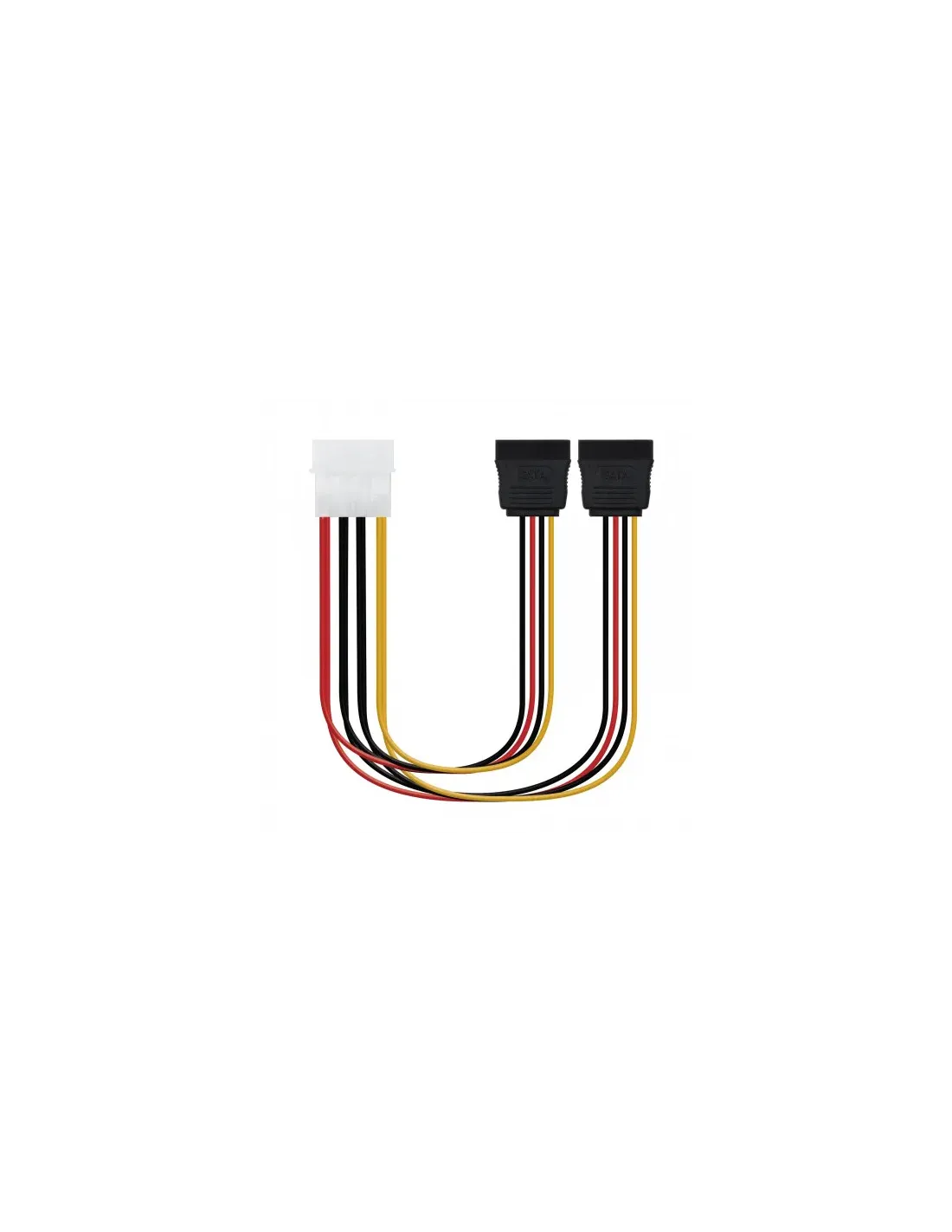 DESCRIPCIÓN:- Conector molex 4 pin macho en un extremo y dos conectores sata alimentación hembra en otro.- Ideal para convertir un conector molex 4 pin a dos conectores sata alimentaciónLONGITUD: 0.3 metros