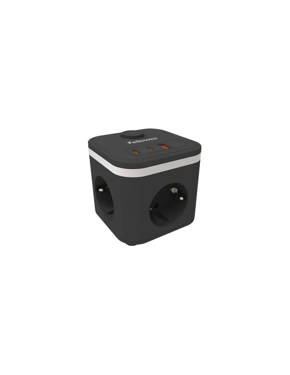 Cubo Multi enchufe Negro. Alimenta varios dispositivos y garantiza un fácil acceso con este cubo portátil que ahorra espacio.Su forma cúbica reduce la acumulación de enchufes y deja más espacio para los dispositivos. Incluye 3 tomas de corriente (230 V), 1 puerto USB A (18 W máx.), 2 puertos USB C (20 W máx.) y un interruptor de encendido/apagado .Es ideal para el hogar, las oficinas, las salas de reuniones y las zonas comunes .Incluye un cable de alimentación extra largo de 2 m con enchufe para una instalación flexible. Fabricado para durar con 5 años de garantía. Disponible en blanco y negro.