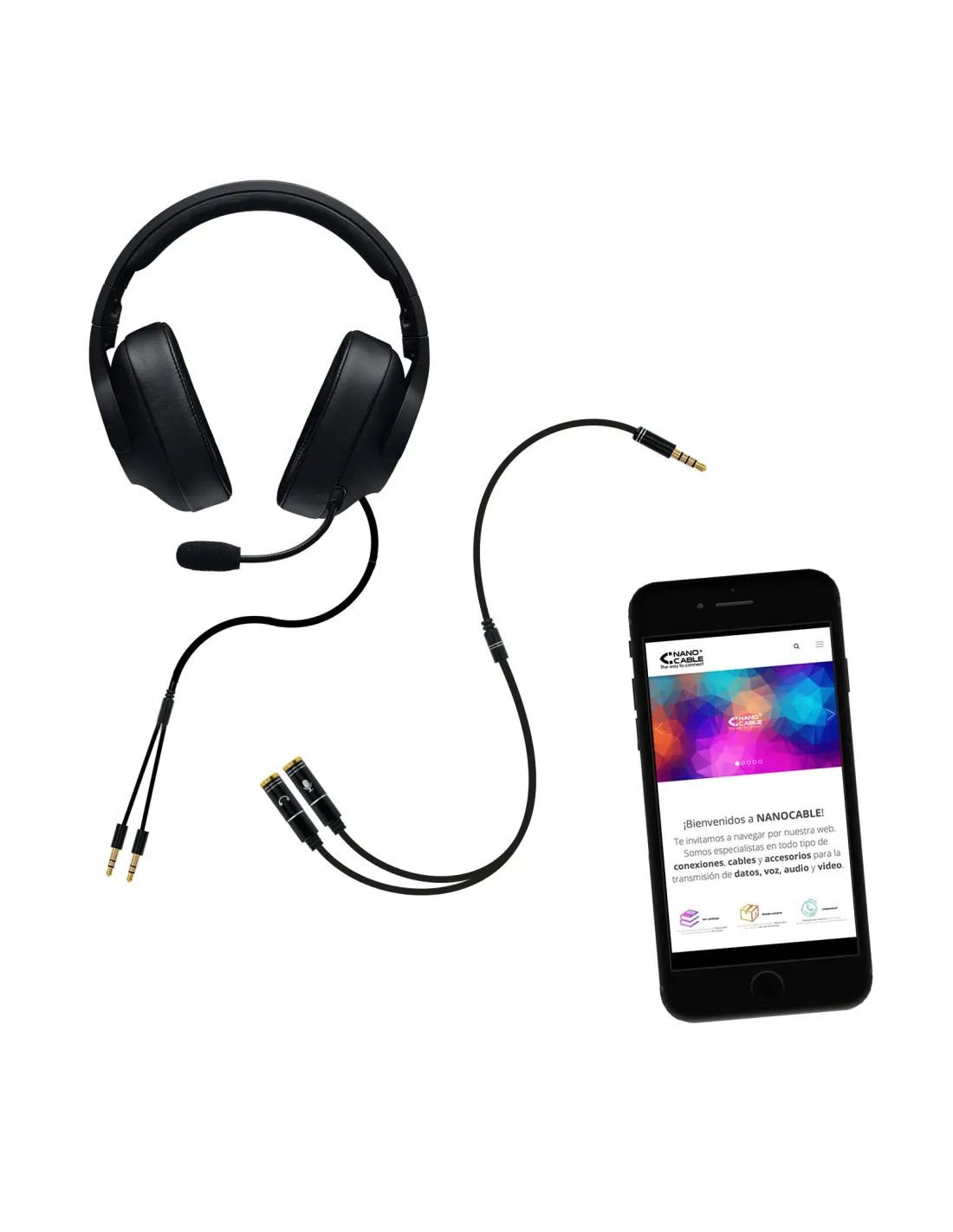 Cable adaptador audio Jack 3.5 macho de 4 pines en un extremo y 2 jack de3.5 hembra de 3 pines en el otro.Ideal para conectar auriculares y micrófono a un dispositivo con un solopuerto de audio con jack 3.5 de 4 pines.Fabricado con conductores de cobre de alta calidad.Longitud: 20 cmColor: BlancoNormativas: RoHSTest de Funcionamiento: 100% testadoGeneralMarca: NANOCABLEGarantía: 2Part Number: 10.24.1202Categorías: CABLESReacondicionado: NoReposición - Etiqueta: NoPeso Volumetrico 0.06 Kg.Aprobaciones reguladorasAcorde RoHS: SiConectividadConector 1: 3.5 mmConector 2: 2 x 3.5 mmTipo de género: Hembra / MachoColorColor: NegroPeso y dimensionesLongitud: 0.3 m