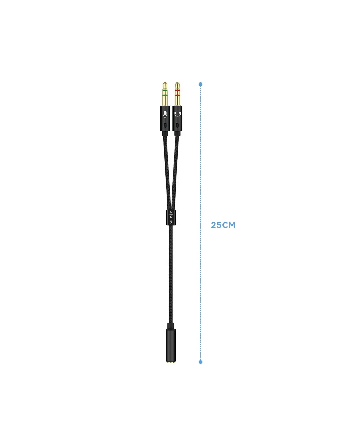 Cable Estéreo Aisens A128-0418/ Jack 3.5 Hembra - 2x Jack 3.5 Macho/ 25cm/ Negro