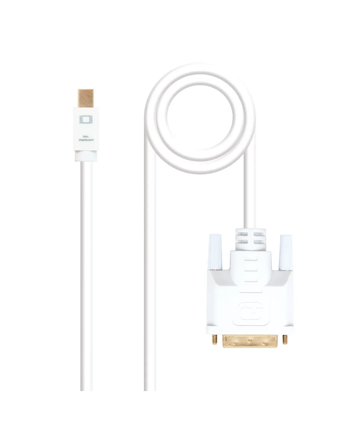 Nanocable Cable conversor Mini DP a DVI, Mini DP/M - DVI/M, Blanco, 2.0 M, 2 m, Mini DisplayPort, DVI, Macho, Macho, Derecho