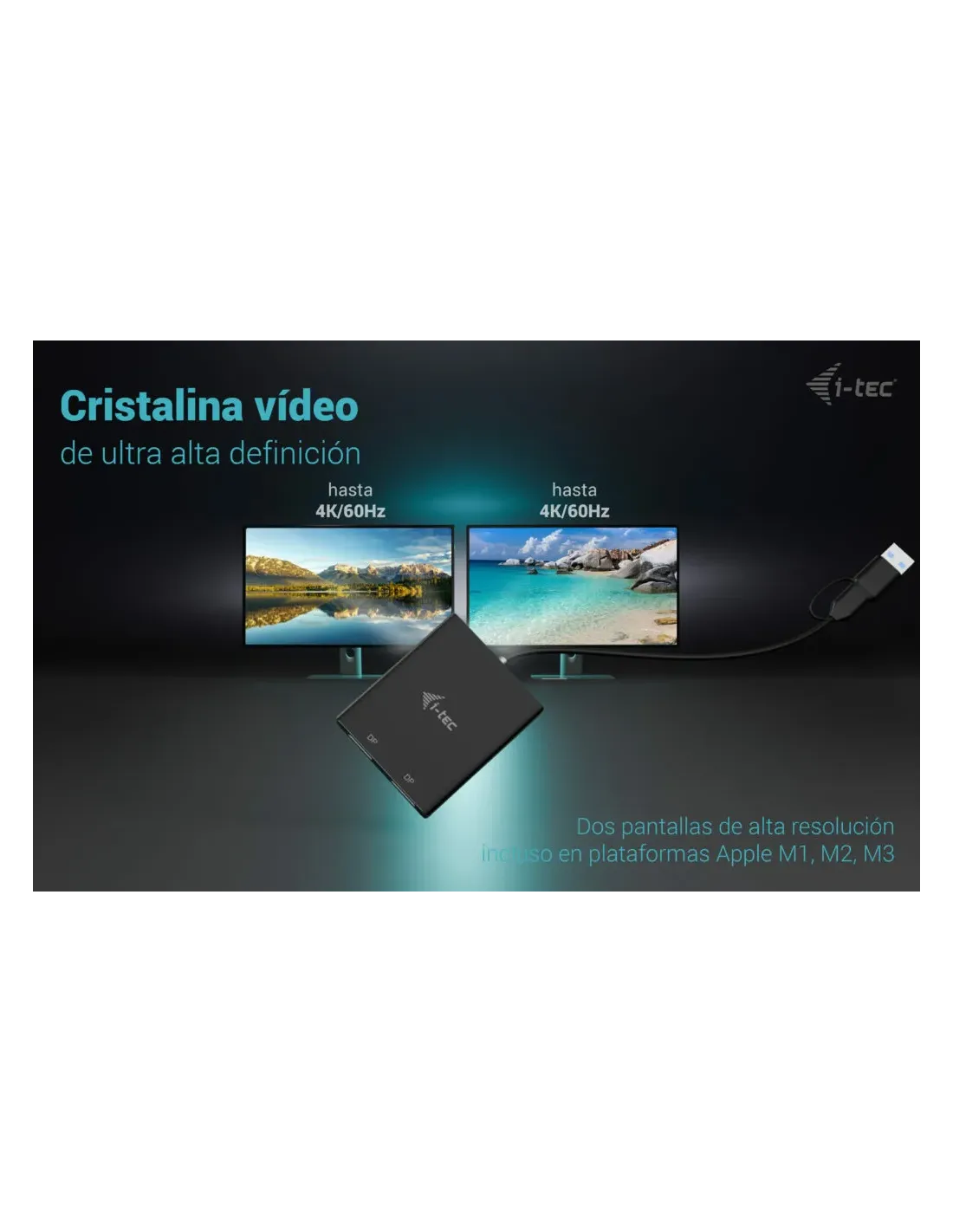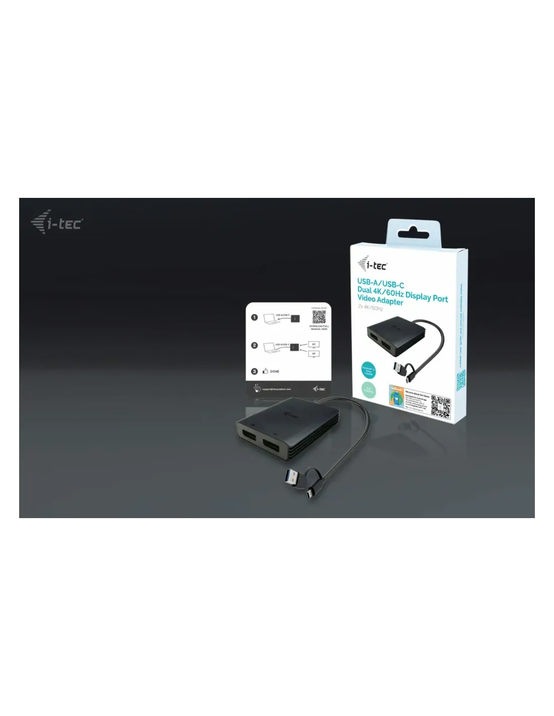 i-tec USB-A/USB-C Dual 4K/60 Hz DisplayPort Video Adapter, 0,27 m, USB Type-A/USB Type-C, 2 x DisplayPort, Macho, Hembra, 3840 x 2160 Pixeles