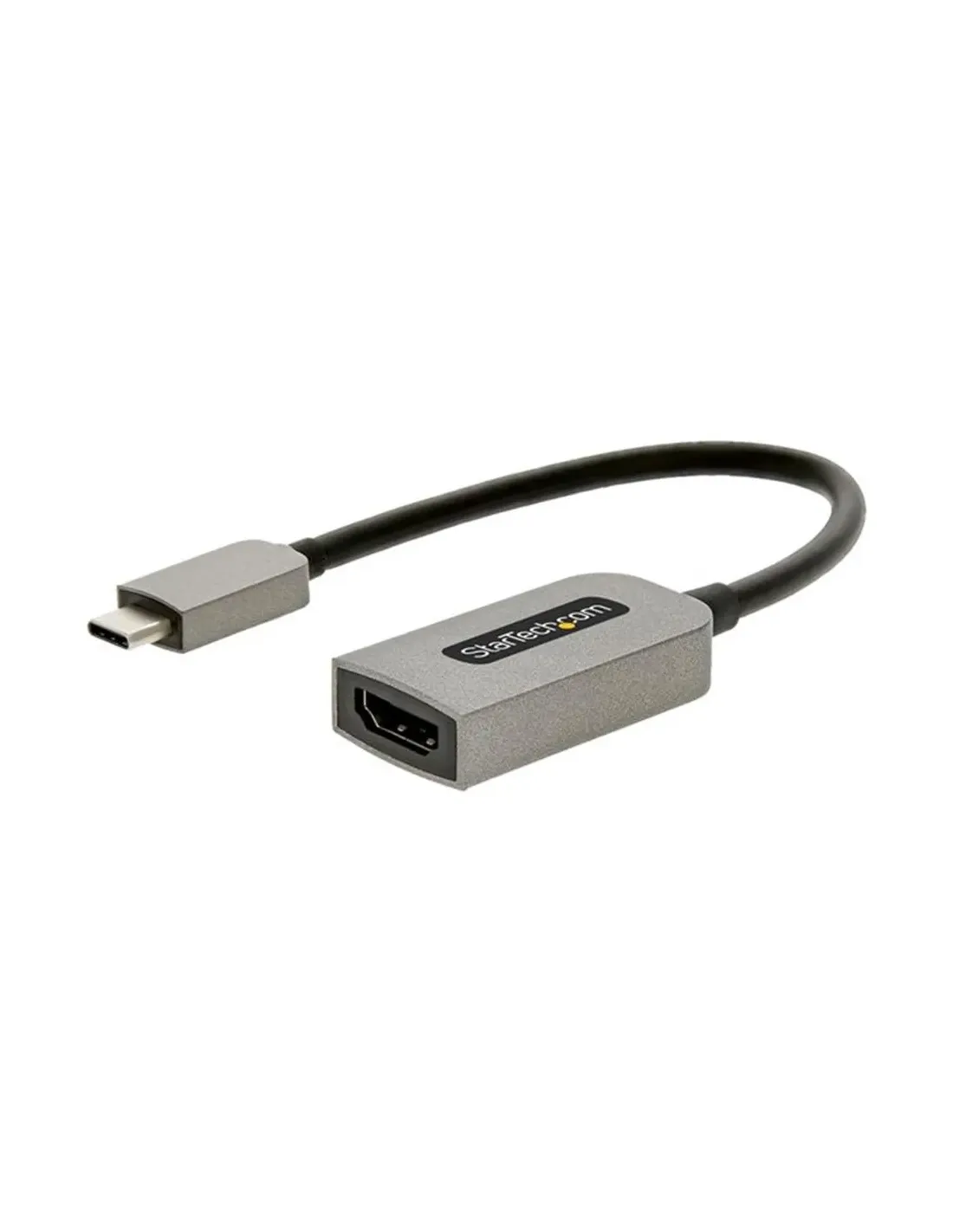 Características del StarTech.com Adaptador USB-C a HDMI 4K 60HzEl **adaptador StarTech.com USB-C a HDMI** es la solución perfecta para quienes necesitan conectar dispositivos USB-C como portátiles, tabletas o smartphones a una pantalla HDMI. Diseñado para ofrecer **transmisión de vídeo en 4K Ultra HD a 60 Hz**, este adaptador compacto y ligero es ideal para entornos profesionales, educativos o de entretenimiento donde se requiere **alta calidad de imagen y sonido sin retardos**.Conexión 4K a 60 Hz con soporte HDRDisfruta de una experiencia visual envolvente gracias a su **compatibilidad con resoluciones de hasta 3840 x 2160 píxeles a 60 Hz**. Además, el soporte para **HDR 10** garantiza una mejora significativa en el contraste y los colores, ideal para contenidos audiovisuales exigentes o presentaciones profesionales.Resolución máxima: 3840 x 2160 (4K) a 60 HzCompatible con HDR 10 para mayor profundidad de colorFrecuencia de actualización estable y sin parpadeosDiseño compacto, duradero y universalCon una longitud de solo **13 cm** y un peso de **16 g**, este adaptador es ideal para llevar en cualquier bolso o mochila. Su acabado en **gris espacio** y revestimiento de plástico resistente combinan ligereza con durabilidad. Es totalmente compatible con **Thunderbolt 3** y el **modo alternativo DisplayPort**, asegurando una amplia compatibilidad con equipos modernos.Longitud: 13 cm ? Peso: 16 gCompatible con puertos USB-C y Thunderbolt 3Revestimiento resistente y diseño discretoAudio inmersivo y garantía de confianzaEl adaptador también permite la transmisión de **audio multicanal 7.1 PCM**, ofreciendo un sonido claro y envolvente para aplicaciones multimedia. Además, cuenta con una **garantía limitada de 3 años**, lo que asegura tranquilidad a largo plazo para el usuario.Canal de audio 7.1 PCM compatibleChipset ANX7517 de alto rendimientoGarantía limitada del fabricante por 3 añosConectividad fiable y cumplimiento normativoSus conectores USB-C (entrada) y HDMI tipo A hembra (salida) permiten una conexión directa sin necesidad de drivers o software adicional. Cumple con las normativas internacionales más exigentes, incluyendo **FCC, RoHS, WEEE y REACH**, lo que lo convierte en una opción segura y responsable.Entrada: USB-C de 24 pines (macho)Salida: HDMI tipo A de 19 pines (hembra)Certificaciones: FCC, RoHS, WEEE, REACH, RCMOtras especificacionesAltura del adaptador: 1.05 cmAnchura del adaptador: 2.2 cmDimensiones del embalaje: 22.5 x 12.5 x 1.5 cmPeso del embalaje: 22 g