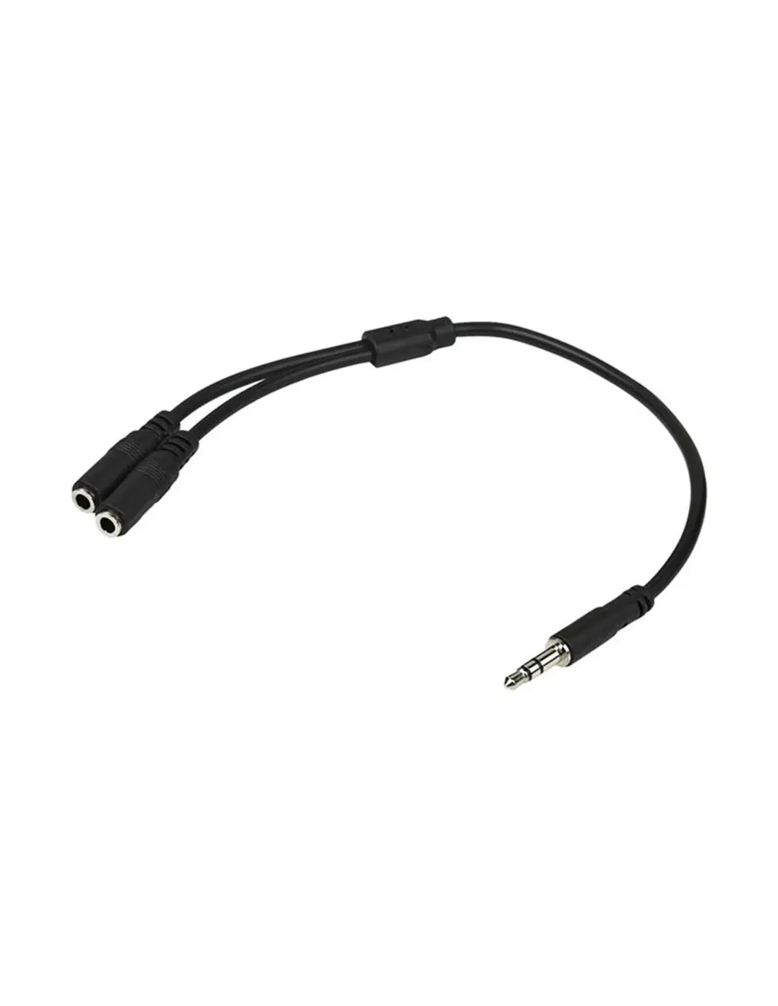 Características del Adaptador de Audio StarTech.com Mini-Jack 3,5mm Macho a 2x HembraEl **adaptador divisor de audio StarTech.com** está diseñado para ofrecer una solución sencilla y eficiente al compartir audio desde un solo dispositivo. Ideal para conectar **dos pares de auriculares estéreo de 3,5 mm** a un único puerto de salida, es perfecto para viajes, entornos educativos o cualquier situación donde se requiera compartir sonido sin necesidad de dispositivos adicionales.Diseño compacto y materiales de calidadCon una longitud de 20 cm y fabricado con materiales duraderos como el revestimiento de PVC y conectores con acabado niquelado, este adaptador garantiza una conexión estable y resistente al desgaste. El diseño moldeado con alivio de tensión reduce el riesgo de daños por uso intensivo o dobleces frecuentes.Longitud del cable: 20 cmMaterial del revestimiento: PVCConectores niquelados con acabado profesionalCalibre del cable: 28 AWGConectividad práctica para uso diarioEste adaptador cuenta con un conector macho de 3,5 mm de 3 pines que se divide en dos salidas hembra estéreo de 3,5 mm, permitiendo compartir audio desde ordenadores, tablets, smartphones u otros dispositivos compatibles. Es una solución plug & play sin necesidad de software o alimentación adicional.Conector de entrada: Mini-jack 3,5 mm machoSalidas: 2 x Mini-jack 3,5 mm hembraCompatible con la mayoría de dispositivos de audio portátilesOtras especificacionesColor: NegroTipo de cable: Separador de audioCaracterísticas adicionales: Moldeado, alivio de tensión