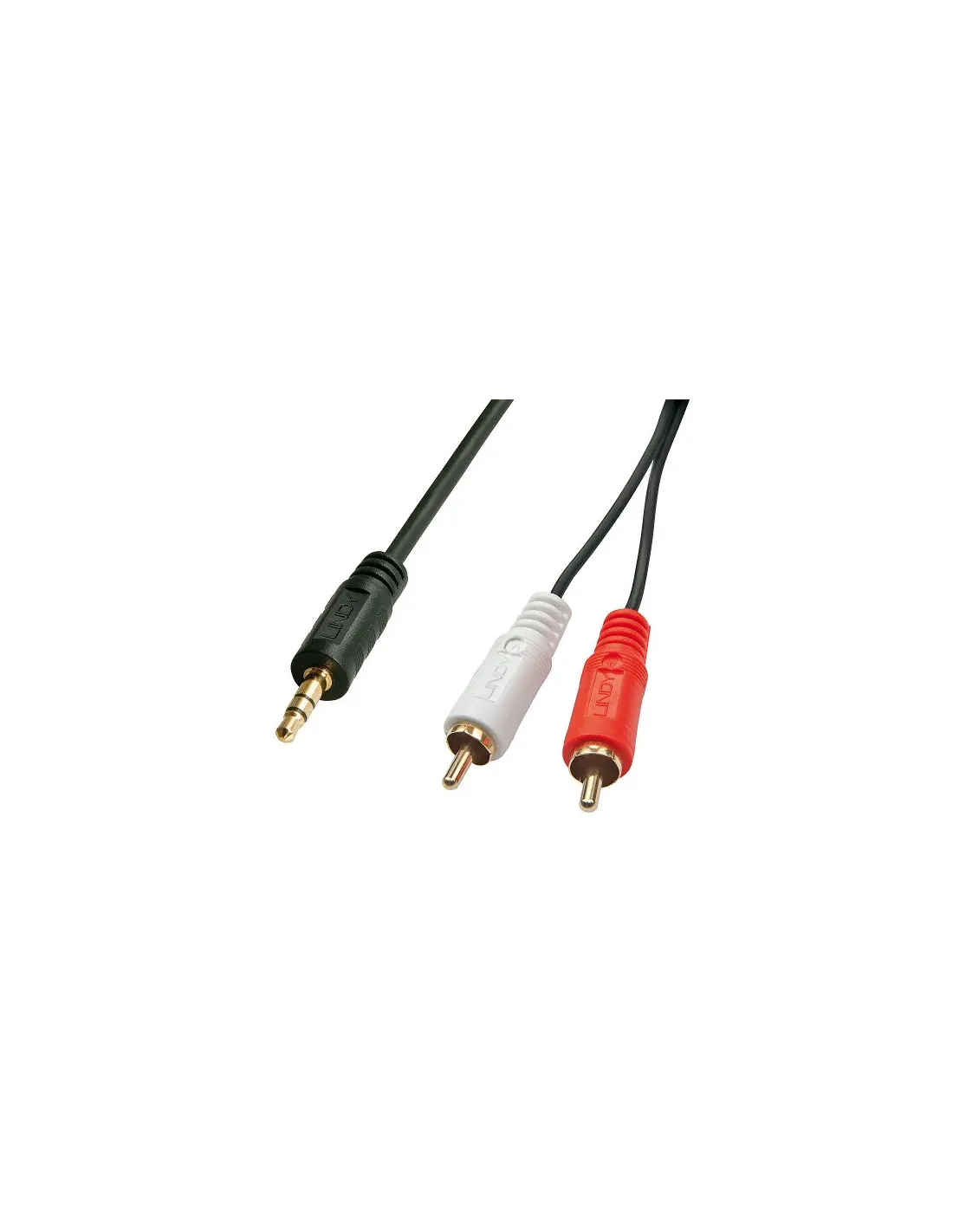 Lindy 35681. Conector 1: 3,5mm, Género del conector 1: Macho, Conector 2: 2 x RCA, Género del conector 2: Macho, Longitud de cable: 2 m, Color del producto: Negro, Rojo, Blanco