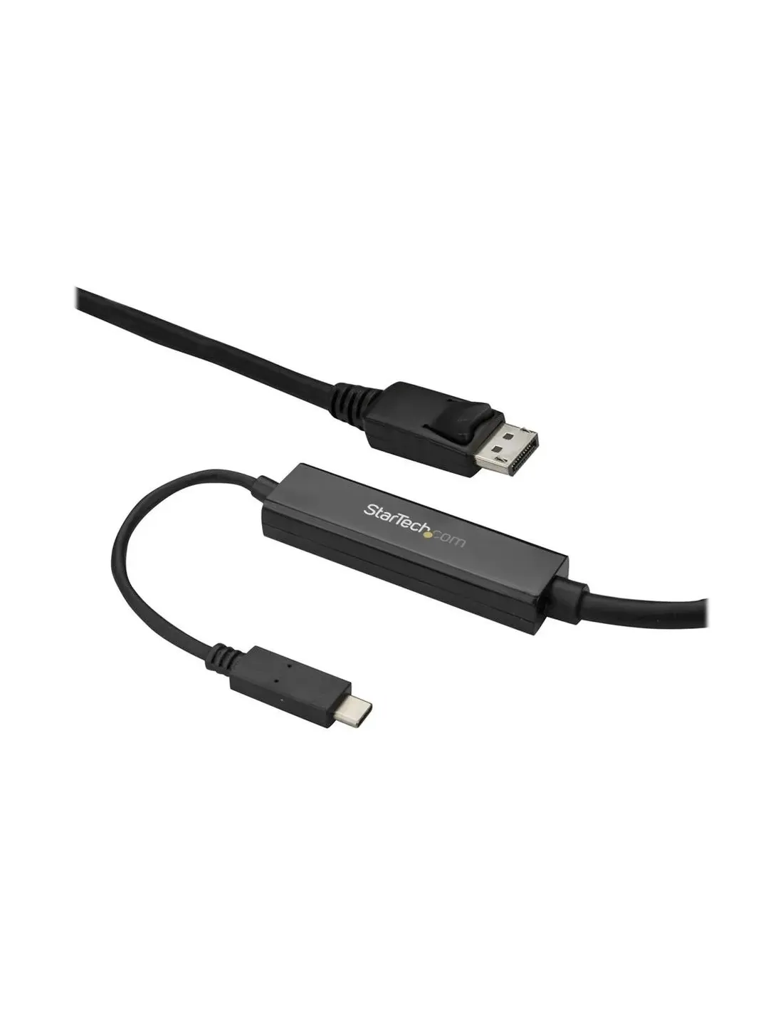 Características del StarTech.com Cable de 3m USB-C a DisplayPortEl adaptador de vídeo USB-C a DisplayPort de StarTech.com es una solución práctica y eficiente para conectar dispositivos modernos a pantallas externas con alta calidad de imagen. Diseñado para usuarios que necesitan transmisión de vídeo en 4K a 60 Hz, este cable de 3 metros ofrece una conexión directa, estable y sin complicaciones, ideal tanto para entornos profesionales como domésticos.Resolución 4K Ultra HD con fluidez totalDisfruta de una experiencia visual nítida y fluida gracias a su compatibilidad con resoluciones de hasta 3840 x 2160 a 60 Hz. Este adaptador permite trabajar, reproducir contenido multimedia o realizar presentaciones con una calidad de imagen superior y sin interrupciones.Resolución máxima: 3840 x 2160 a 60 HzCompatible con contenido HD y 4KTransmisión de vídeo fluida y sin retardosConectividad versátil USB-C a DisplayPortGracias a su interfaz USB Tipo C y salida DisplayPort, este cable permite conectar fácilmente portátiles, tablets u otros dispositivos compatibles a monitores o proyectores. Además, es compatible con Thunderbolt 3, lo que amplía su compatibilidad con equipos de alto rendimiento.Entrada USB-CSalida DisplayPort (conector macho)Compatible con Thunderbolt 3Audio envolvente y alto rendimientoNo solo transmite vídeo de alta calidad, sino que también es capaz de ofrecer sonido envolvente de hasta 7.1 canales, proporcionando una experiencia multimedia completa tanto en reproducción como en entornos profesionales.Soporte para audio envolvente 7.1Chip gráfico STM32F072CBU6 integradoAlta estabilidad en la señalDiseño funcional y cable de 3 metrosSu longitud de 3 metros permite una instalación flexible en distintos entornos, mientras que su diseño en color negro resulta discreto y profesional. Además, está fabricado para ofrecer durabilidad y cumplir con estándares internacionales.Longitud del cable: 3 mColor: negroPeso: 180 gDimensiones compactas: 2 cm de ancho y 1 cm de altoFiabilidad y garantíaEste adaptador cumple con múltiples normativas de calidad y seguridad, y está respaldado por una garantía limitada de 3 años, lo que garantiza un uso fiable a largo plazo.Certificaciones: FCC, RoHS, WEEEGarantía: 3 añosTemperatura de funcionamiento: 0 °C a 40 °CHumedad de funcionamiento: 20 - 70%Otras especificacionesTipo de dispositivo: adaptador de vídeo externoTipo de bus: USB-C
