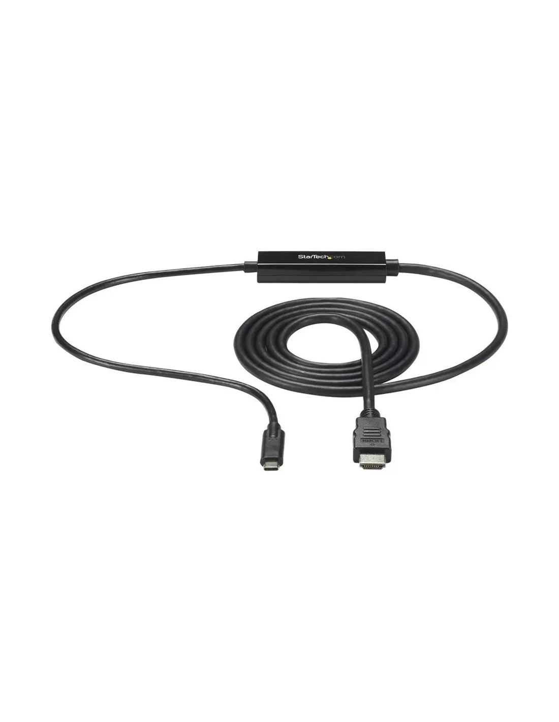Características del StarTech.com Cable Adaptador USB-C a HDMI 2m 4K 30HzEl adaptador StarTech.com USB-C a HDMI de 2 metros es una solución práctica y eficiente para conectar dispositivos con salida USB-C a pantallas, monitores o televisores con entrada HDMI. Diseñado para usuarios que necesitan transmitir vídeo en alta resolución, este conversor permite disfrutar de contenido en calidad 4K de forma sencilla y sin configuraciones complejas.Salida de vídeo en calidad 4KEste adaptador es capaz de ofrecer una resolución máxima de 3840 x 2160 píxeles a 30 Hz, lo que garantiza una imagen nítida y detallada para presentaciones, reproducción multimedia o trabajo en pantalla extendida. Es una opción ideal para quienes buscan mejorar su experiencia visual con un solo cable.Resolución máxima: 3840 x 2160 (4K)Frecuencia de actualización: 30 HzSeñal de vídeo estable y de alta calidadConectividad sencilla y compatibilidad USB-CGracias a su interfaz USB-C, este adaptador permite una conexión rápida y directa con portátiles, tablets o smartphones compatibles. Su conector HDMI macho facilita la conexión a cualquier pantalla moderna sin necesidad de adaptadores adicionales.Tipo de bus: USB-CConector HDMI macho integradoInstalación plug & play sin configuraciónCable de 2 metros para mayor flexibilidadEl cable de 2 metros de longitud proporciona una mayor libertad de colocación entre dispositivos, permitiendo adaptarse a diferentes entornos de trabajo o entretenimiento sin limitaciones de espacio.Longitud del cable: 2 mMayor comodidad en instalaciones de escritorioIdeal para oficinas y uso domésticoDiseño fiable y duraderoFabricado bajo estrictos estándares de calidad, este adaptador cumple con normativas internacionales y está preparado para un uso continuado. Además, cuenta con garantía limitada de 3 años, lo que aporta tranquilidad y respaldo a largo plazo.Certificaciones: FCC, RoHS, WEEEGarantía limitada de 3 añosConstrucción robusta y fiableFuncionamiento estable en distintos entornosEl adaptador está diseñado para ofrecer un rendimiento estable en diversas condiciones ambientales, lo que lo hace adecuado tanto para entornos profesionales como domésticos.Temperatura de funcionamiento: 0 °C a 45 °CHumedad de funcionamiento: 5% - 95% sin condensación