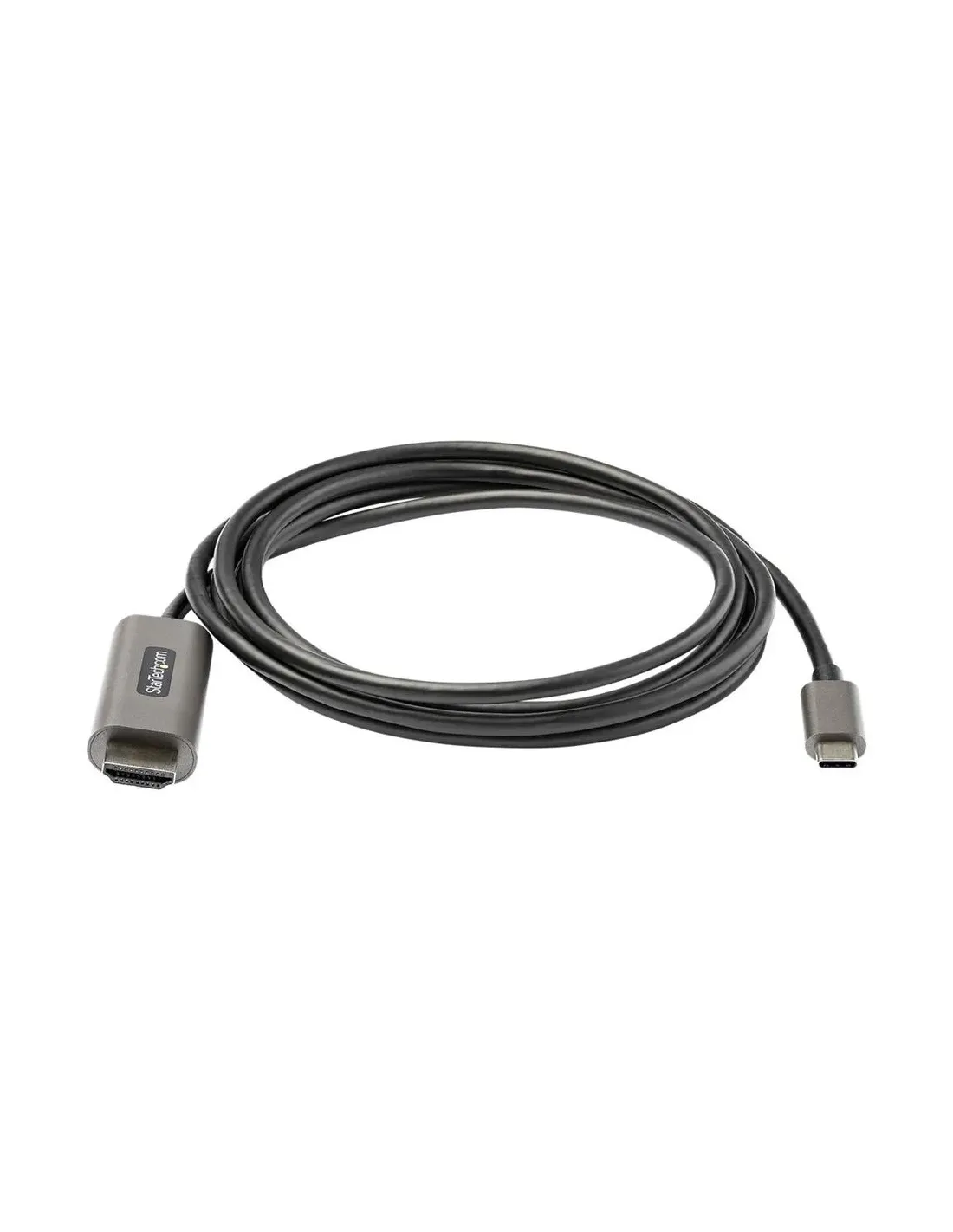 Características del StarTech.com Cable USB-C a HDMI 4K 60Hz HDR10 de 2m (CDP2HDMM2MH)El cable adaptador USB-C a HDMI StarTech.com es una solución práctica y eficiente para conectar dispositivos modernos a pantallas externas con calidad Ultra HD 4K. Diseñado para usuarios que buscan rendimiento, compatibilidad y facilidad de uso, este cable activo permite transmitir vídeo y audio de alta calidad sin necesidad de adaptadores adicionales. Ideal para entornos profesionales, educativos o domésticos.Resolución 4K a 60Hz con HDR10Disfruta de una experiencia visual nítida y fluida gracias a su compatibilidad con resolución 4K (3840 x 2160) a 60 Hz. Además, el soporte para HDR10 y color profundo de 8 y 10 bits mejora el contraste y la precisión del color, ofreciendo imágenes más realistas.Resolución máxima: 3840 x 2160 (4K UHD)Frecuencia de actualización: 60 HzCompatible con HDR10Color profundo de 8 y 10 bitsCompatibilidad universal y conexión directaGracias a su conector USB-C con modo alternativo DisplayPort, este cable es compatible con una amplia variedad de dispositivos como portátiles, smartphones o tablets. Además, su diseño Plug and Play permite una instalación inmediata sin configuraciones.Conector USB-C macho (entrada)Conector HDMI tipo A macho (salida)Compatible con Thunderbolt 3 y DisplayPort 1.4Compatible con Windows, macOS, Linux, Android y Chrome OSTransmisión de audio y vídeo de alta calidadEste cable no solo transmite vídeo, sino también audio digital de alta calidad, incluyendo audio multicanal 7.1 PCM. Su chipset integrado garantiza una señal estable y sin interferencias.Soporte de audio 7.1 PCMCompatible con HBR3Chipset Realtek RTD2172U integradoDiseño compacto y construcción fiableCon una longitud de 2 metros, este cable ofrece flexibilidad suficiente para diferentes configuraciones de escritorio. Su diseño en color negro y su construcción robusta lo hacen ideal para un uso diario intensivo.Longitud del cable: 2 mColor: NegroPeso: 69 gTipo: Cable adaptador activo compatible con 4KCertificaciones y garantíaEl producto cumple con múltiples normativas internacionales que garantizan su calidad y seguridad. Además, cuenta con garantía limitada de 3 años para mayor tranquilidad.Certificaciones: FCC, RoHS, WEEE, RCMCompatibilidad HDCP 1.4 y 2.2Función Plug and PlayGarantía de 3 añosOtras especificacionesDimensiones: 2.2 cm (ancho) x 1.2 cm (alto)Peso con embalaje: 78 gDimensiones del embalaje: 21.8 x 20 x 1.6 cm