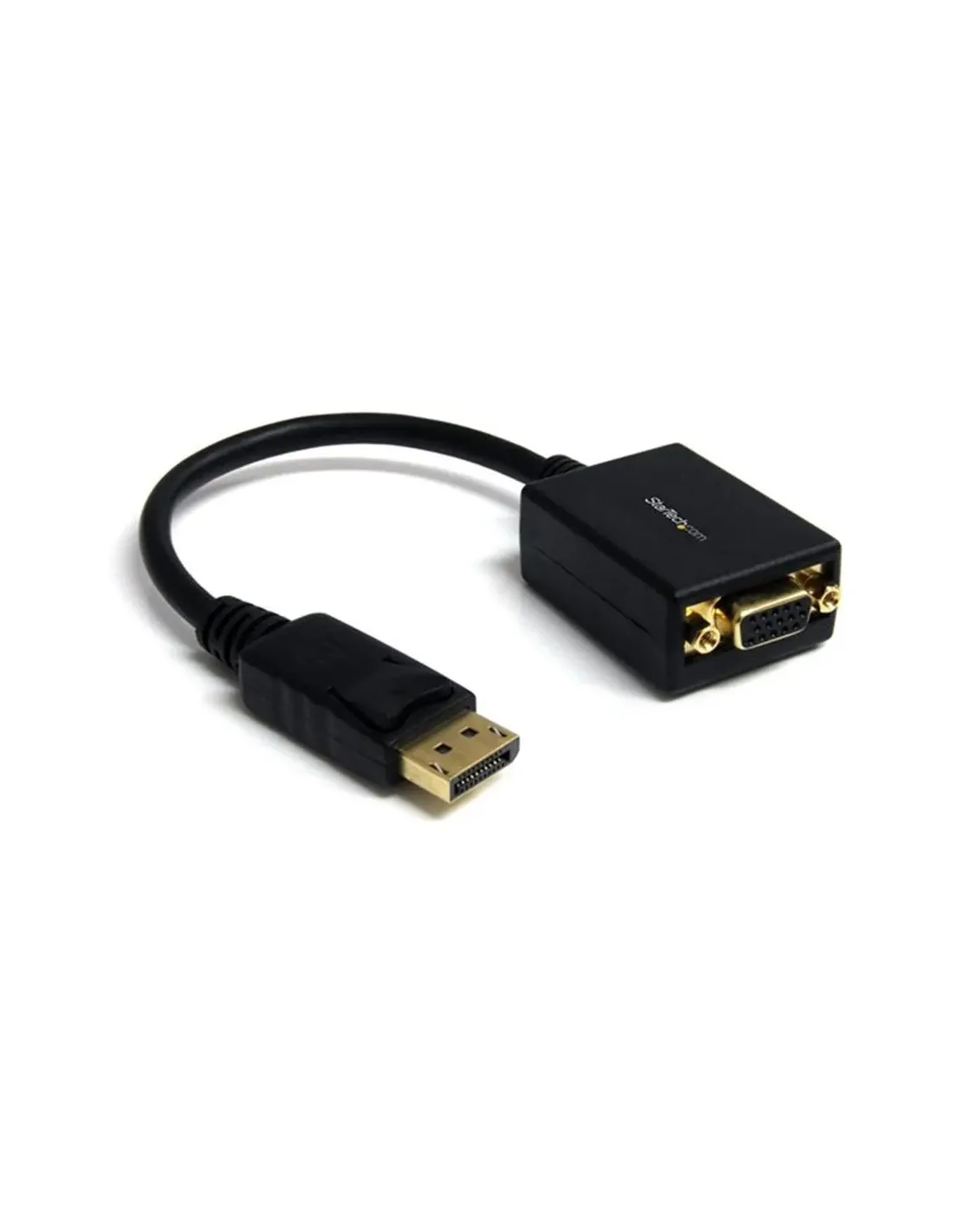 Características del StarTech.com Adaptador Conversor de Vídeo DisplayPort a VGA (27,94 cm)El adaptador StarTech.com DisplayPort a VGA es una solución práctica para conectar equipos con salida DisplayPort (DP) a monitores o proyectores con entrada VGA. Diseñado para ofrecer una conexión fiable y sencilla, este convertidor activo permite utilizar pantallas analógicas con dispositivos modernos, alcanzando resoluciones de hasta 1920x1200. Su formato compacto con cable integrado de 27,94 cm facilita la instalación en entornos profesionales, educativos o domésticos.Conexión DisplayPort a VGA sencilla y eficienteEste adaptador permite convertir la señal digital de DisplayPort a una salida VGA (HD-15), permitiendo utilizar monitores o proyectores que solo disponen de entrada analógica. Es una opción ideal para salas de reuniones, aulas o configuraciones de trabajo donde todavía se emplean pantallas VGA.Conector DisplayPort de 20 patillas (macho)Conector VGA HD D-Sub de 15 clavijas (HD-15) (hembra)Conversión de señal de vídeo DisplayPort a VGAResolución de vídeo nítidaEl adaptador es compatible con resoluciones de hasta 1920x1200, lo que permite mantener una calidad de imagen adecuada para presentaciones, trabajo de oficina o visualización de contenido multimedia. Su diseño activo garantiza una transmisión de señal estable entre dispositivos.Resolución máxima soportada: 1920x1200Convertidor activo de señal de vídeoCompatible con monitores y proyectores VGADiseño compacto y robustoGracias a su cable integrado de 27,94 cm, este adaptador facilita la conexión incluso en espacios reducidos o en la parte trasera de estaciones de trabajo. Su construcción en color negro y el sistema de conector con bloqueo ayudan a mantener una conexión segura durante el uso.Longitud del cable: 27,94 cmColor: negroConector con sistema de bloqueoCompatibilidad y fiabilidadEl adaptador cumple con las normativas FCC y RoHS, lo que garantiza estándares de seguridad y fabricación responsables. Además, cuenta con una garantía del fabricante de 3 años, ofreciendo tranquilidad y durabilidad en entornos profesionales.Cumplimiento de normas: FCC, RoHSGarantía del fabricante de 3 añosCompatibilidad con estaciones y docks StarTech.comEste adaptador ha sido diseñado para funcionar con diversos dispositivos y estaciones de acoplamiento de StarTech.com, facilitando su integración en configuraciones profesionales y soluciones de conectividad avanzadas.Compatible con múltiples docks y adaptadores StarTech.comIntegración sencilla en entornos de trabajo profesionales