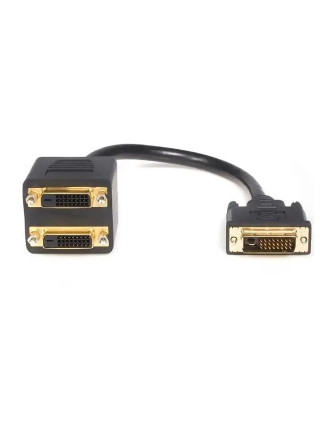 Características del Splitter DVI 2 Puertos DVI-DEl splitter DVI de 2 puertos DVI-D es una solución práctica para duplicar la señal de vídeo desde un único origen hacia dos dispositivos de salida. Diseñado para entornos de oficina, configuraciones multimedia o puestos de trabajo con múltiples pantallas, este cable adaptador ofrece una conexión estable y sencilla sin necesidad de configuraciones complejas.Duplicación de señal de vídeoGracias a su diseño tipo splitter, permite conectar una fuente de vídeo DVI a dos pantallas o dispositivos compatibles. Es ideal para presentaciones, configuraciones de escritorio extendido o duplicado de imagen en diferentes monitores.1 conector DVI-D macho (entrada)2 conectores DVI-D hembra (salida)Transmisión de señal digitalConectores DVI-D de 25 pinesEste modelo incorpora conectores DVI-D con 25 pines, asegurando compatibilidad con dispositivos que utilizan señal digital. Su construcción permite una conexión firme y estable, reduciendo interferencias en la transmisión.Tipo de conector A: DVI-D machoTipo de conector B: DVI-D hembraNúmero de polos: 25 en ambos extremosDiseño compacto y funcionalCon una longitud de 30 cm, este splitter ofrece la flexibilidad necesaria para instalaciones cercanas sin generar exceso de cableado. Su acabado en color negro facilita su integración en cualquier entorno profesional o doméstico.Longitud del cable: 30 cmColor: negroFácil instalación sin herramientasFormato y presentaciónSe suministra en formato individual, listo para su uso inmediato. Es una opción práctica para quienes necesitan duplicar señal de vídeo de forma rápida y eficiente.Número de unidades por paquete: 1Tipología: cable splitter DVI