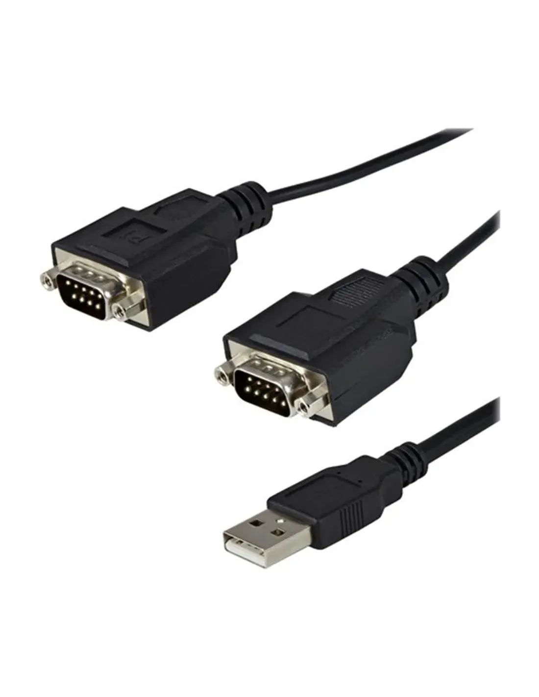 Características de la StarTech.com Cable de 1,8m USB a 2 Puertos Serie RS232El adaptador USB a doble puerto serie RS-232 de StarTech.com es una solución fiable y práctica para conectar dispositivos heredados a equipos modernos. Diseñado para profesionales que necesitan compatibilidad con periféricos serie, este adaptador permite añadir dos puertos RS-232 DB9 a través de una única conexión USB, facilitando la integración en entornos industriales, técnicos o de mantenimiento.Conectividad dual RS-232 a través de USBGracias a su diseño, este adaptador permite convertir un puerto USB en dos interfaces serie independientes, ideal para trabajar con equipos como impresoras industriales, escáneres, módems o sistemas de control.1 x USB Tipo A macho (4 clavijas)2 x puertos RS-232 DB9 machoProtocolo de datos RS-232Instalación sencilla y alimentación por USBEl dispositivo se alimenta directamente a través del puerto USB, eliminando la necesidad de fuentes de energía externas. Además, su cable integrado de 1,8 metros facilita una instalación flexible y ordenada.Alimentación directa por USBCable USB integrado de 1,8 mIndicador LED de alimentaciónAmplia compatibilidad con sistemas operativosEste adaptador destaca por su compatibilidad con una gran variedad de sistemas operativos, lo que lo convierte en una opción versátil tanto para entornos actuales como legacy.Compatible con Windows (desde 98 SE hasta Windows 11)Soporte para Linux (versiones LTS y kernel 2.4.x o superior)Compatible con macOS desde 10.6 hasta macOS 13.0Diseño robusto y preparado para uso profesionalSu construcción externa en color negro y cumplimiento de normativas garantiza un uso seguro y duradero. Además, está preparado para trabajar en diferentes condiciones ambientales.Cumplimiento de normativas FCC y RoHSTemperatura de funcionamiento: 0 °C a 55 °CHumedad de funcionamiento: 5% - 95%Otras especificacionesTipo de dispositivo: Adaptador serie externoInterfaz de conexión: USBPuertos: 2 x RS-232Kit de montaje incluidoPeso: 300 g