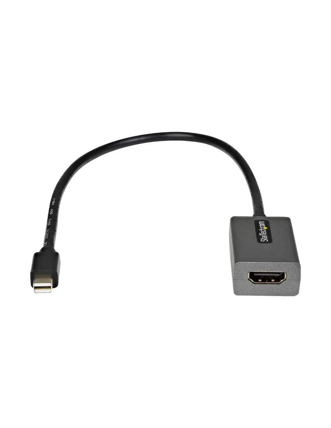 Características del StarTech.com Adaptador Mini DisplayPort a HDMI MDP2HDECEl adaptador Mini DisplayPort a HDMI StarTech.com MDP2HDEC es una solución práctica y compacta para conectar dispositivos con salida Mini DisplayPort o Thunderbolt 2 a pantallas HDMI. Diseñado en formato tipo dongle con cable de 30 cm, permite una conexión cómoda y flexible, ideal tanto para entornos profesionales como domésticos.Conexión sencilla y compatibilidad universalEste adaptador facilita la conexión directa entre equipos compatibles con Mini DisplayPort 1.2 y monitores o televisores HDMI. Su diseño pasivo lo convierte en una opción eficiente para transmitir señal de vídeo sin complicaciones.Conector Mini DisplayPort machoSalida HDMI tipo A de 19 patillas (hembra)Compatible con DisplayPort 1.2 y Thunderbolt 2Calidad de imagen Full HD y sonido envolventeDisfruta de una experiencia multimedia completa gracias a su capacidad para ofrecer resoluciones de hasta 1920 x 1200 a 60 Hz, junto con soporte para audio envolvente 7.1. Ideal para presentaciones, reproducción de contenido o trabajo diario.Resolución máxima de 1920 x 1200Frecuencia de actualización de 60 HzSoporte de audio envolvente 7.1Diseño compacto y portátilSu formato ligero y compacto, junto con un cable integrado de 30 cm, permite una instalación cómoda sin tensiones en los puertos. Perfecto para llevarlo contigo y utilizarlo en cualquier lugar.Longitud del cable: 30 cmPeso: 24 gColor: negroAmplia compatibilidad y fiabilidad garantizadaEste adaptador es compatible con múltiples sistemas operativos, lo que garantiza su uso en diferentes entornos. Además, cumple con estándares como HDCP 1.4 y cuenta con una garantía limitada de 3 años para mayor tranquilidad.Compatible con Windows 10, macOS, Ubuntu y Chrome OSCumplimiento HDCP 1.4Garantía limitada de 3 añosOtras especificacionesTipo de adaptador: convertidor pasivoDimensiones: 1.5 cm de alto, 2.65 cm de anchoDimensiones del embalaje: 22.5 x 12.5 cmPeso del embalaje: 25 g