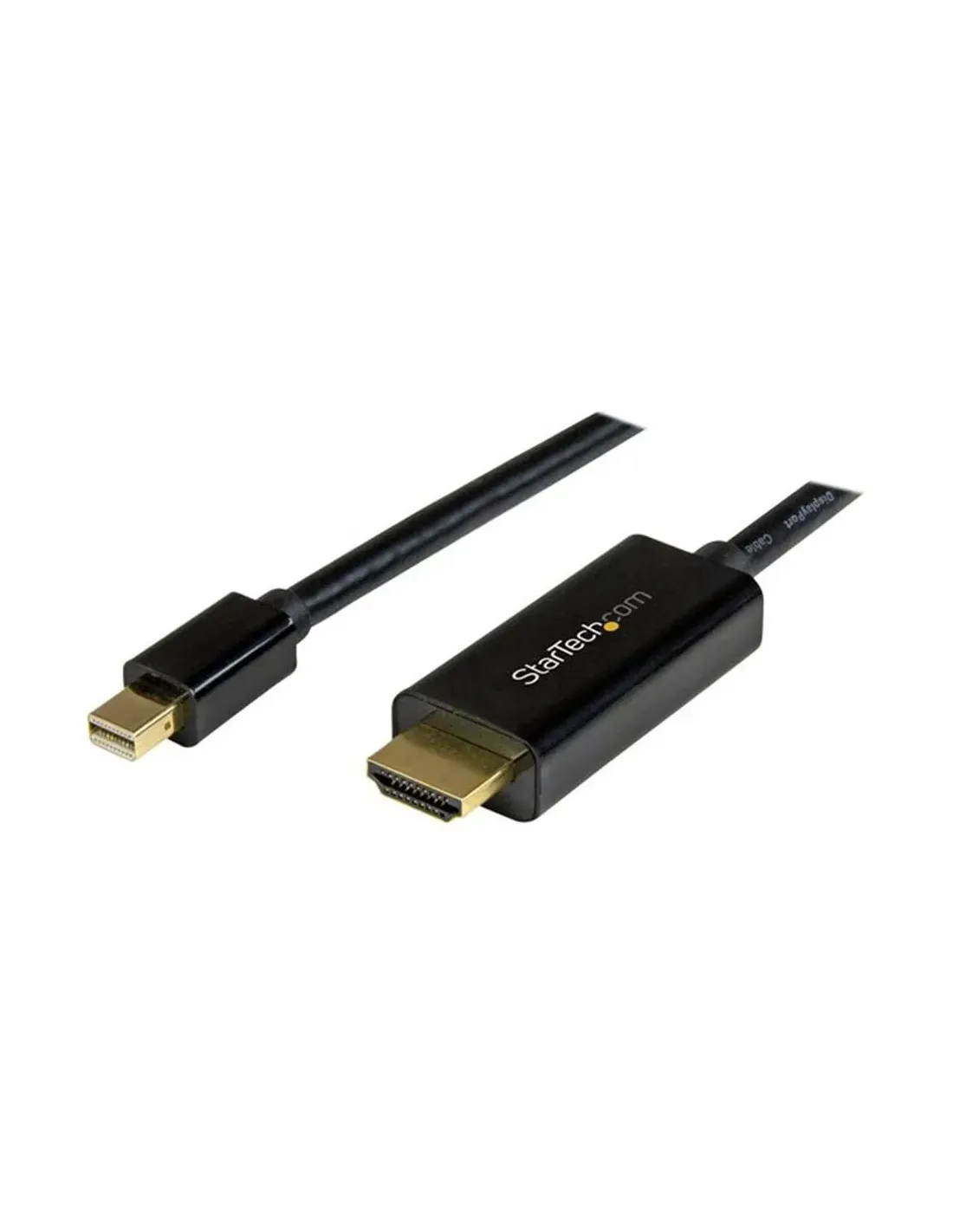 Características del StarTech.com Cable Conversor Mini DisplayPort a HDMI de 1 m - Negro - 4KEl cable conversor StarTech.com Mini DisplayPort a HDMI es una solución práctica y eficiente para conectar dispositivos con salida Mini DisplayPort a pantallas, monitores o televisores con entrada HDMI. Diseñado para ofrecer calidad de imagen Ultra HD 4K, es ideal tanto para entornos profesionales como para uso doméstico, garantizando una conexión estable y de alta calidad en todo momento.Resolución 4K para una experiencia visual superiorEste cable permite disfrutar de contenido en resolución Ultra HD 4K, ofreciendo imágenes nítidas y detalladas. Es perfecto para presentaciones, reproducción multimedia o trabajo con contenido de alta definición, asegurando una transmisión de señal clara y sin interrupciones.Compatibilidad con resolución 4KEstándar DisplayPort 1.2Transmisión de vídeo de alta calidadConectividad fiable y compatibilidad garantizadaGracias a sus conectores Mini DisplayPort macho a HDMI tipo A macho, este cable ofrece una conexión directa sin necesidad de adaptadores adicionales. Además, es compatible con tecnologías de protección de contenido como HDCP y DPCP, lo que asegura una reproducción segura de contenido digital protegido.Conector Mini DisplayPort machoConector HDMI de 19 pines tipo A machoCompatible con HDCP y DPCPDiseño compacto y duraderoCon una longitud de 1 metro, este cable ofrece la flexibilidad necesaria para distintas configuraciones sin generar desorden. Su acabado en color negro y su fabricación bajo estándares de calidad como FCC y RoHS garantizan un uso seguro y duradero.Longitud del cable: 1 mColor: NegroCumplimiento de normas FCC y RoHSFiabilidad respaldada por garantíaStarTech.com respalda este cable con una garantía limitada de 3 años, lo que refleja su compromiso con la calidad y la durabilidad del producto, ofreciendo tranquilidad en su uso a largo plazo.Garantía limitada de 3 añosConstrucción fiable para uso prolongadoIdeal para entornos profesionales y domésticosOtras especificacionesTipo de cable: Adaptador Mini DisplayPort a HDMIInterfaz soportada: DisplayPort / HDMI
