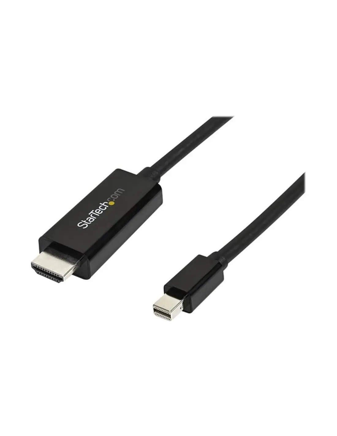 Características del StarTech.com Cable Adaptador Mini DisplayPort a HDMI de 3 m 4K 30HzEl cable adaptador StarTech.com Mini DisplayPort a HDMI de 3 metros es una solución práctica y eficiente para conectar dispositivos con salida Mini DisplayPort a pantallas, monitores o televisores con entrada HDMI. Diseñado para ofrecer calidad de imagen Ultra HD 4K, este cable es ideal tanto para entornos profesionales como domésticos que requieren una conexión fiable y de alto rendimiento.Resolución 4K Ultra HD para una imagen nítidaDisfruta de una experiencia visual detallada gracias a su compatibilidad con resolución 4K a 30 Hz. Este cable permite transmitir vídeo en alta definición, ideal para presentaciones, reproducción multimedia o configuraciones de escritorio ampliadas.Soporte de resolución hasta 4K (Ultra HD) a 30 HzCompatible con estándar DisplayPort 1.2Señal estable y de alta calidadConexión directa y sin adaptadores adicionalesGracias a su diseño todo en uno, este cable elimina la necesidad de adaptadores externos, facilitando una instalación rápida y sin complicaciones. Simplemente conecta y comienza a utilizarlo.Conector Mini DisplayPort machoConector HDMI tipo A de 19 pines machoDiseño plug & play sin configuración adicionalDiseño funcional y compatibleSu longitud de 3 metros ofrece flexibilidad para conectar dispositivos a mayor distancia sin comprometer el rendimiento. Además, es compatible con tecnologías de protección de contenido digital.Longitud del cable: 3 mCompatible con HDCP y conforme a DPCPColor negro discreto y profesionalCalidad certificada y garantíaFabricado bajo estándares exigentes, este cable cumple con normativas internacionales que garantizan seguridad y respeto medioambiental, además de ofrecer una garantía extendida.Cumplimiento de normativas FCC y RoHSGarantía limitada de 3 añosConstrucción fiable para uso prolongadoOtras especificacionesInterfaz soportada: DisplayPort / HDMITipo de cable: Cable adaptador compatible con 4K