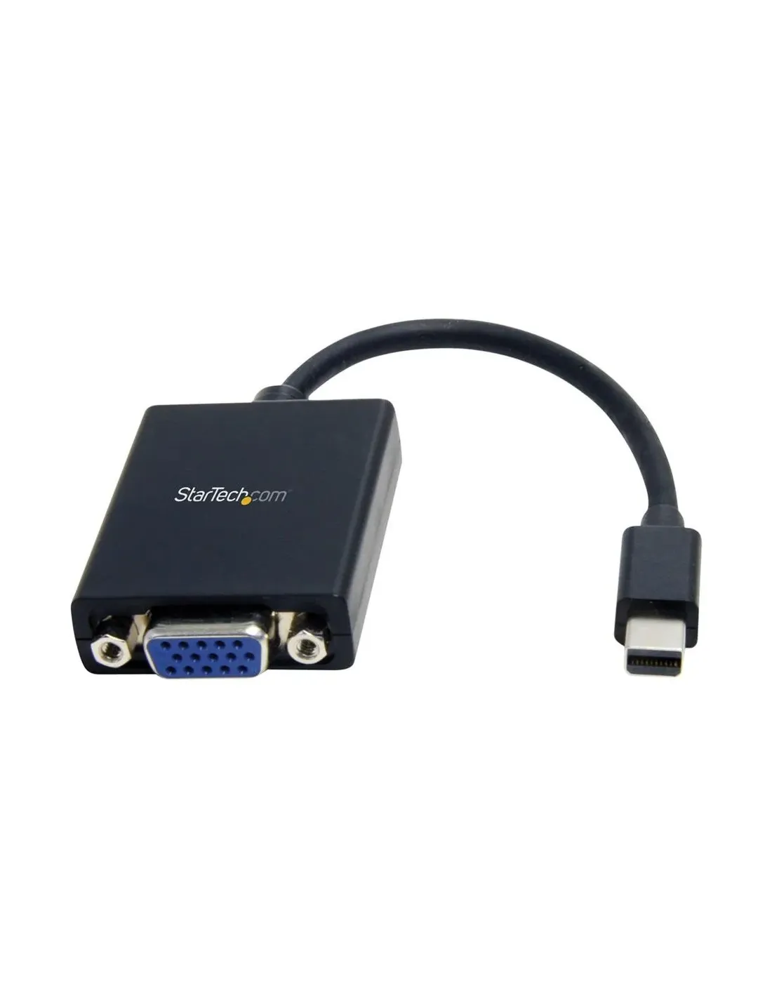 Características del StarTech.com Adaptador Mini DisplayPort a VGA MDP2VGAEl adaptador StarTech.com Mini DisplayPort a VGA (MDP2VGA) es una solución práctica y fiable para conectar dispositivos modernos con salida Mini DisplayPort o Thunderbolt 1/2 a monitores o proyectores con entrada VGA. Diseñado para entornos profesionales, educativos o domésticos, permite disfrutar de vídeo en alta definición hasta 1080p en pantallas más antiguas sin complicaciones.Conversión activa de señal para máxima compatibilidadGracias a su tecnología de conversión activa, este adaptador garantiza una señal estable y compatible incluso con equipos que no soportan salida DP++. Es ideal para portátiles, ordenadores Mac o PC que necesiten conectarse a pantallas VGA sin pérdida de calidad.Adaptador activo Mini DisplayPort a VGACompatible con DisplayPort 1.2Soporte para resoluciones de hasta 1080pConectividad sencilla y versátilSu diseño plug & play permite una instalación rápida sin necesidad de controladores. Es perfecto para presentaciones, aulas o espacios de trabajo donde se requiere conectar rápidamente diferentes dispositivos a pantallas VGA.Conector Mini DisplayPort macho (entrada)Salida VGA HD-15 hembraCompatible con Thunderbolt 1 y 2Diseño compacto y fácil de transportarCon una longitud de solo 13 cm y un peso de 28 g, este adaptador es fácil de llevar en cualquier bolsa o mochila. Su acabado en color negro y construcción en plástico resistente lo hacen duradero para un uso diario.Longitud del cable: 13 cmPeso ligero: 28 gDiseño compacto y portátilCertificación y fiabilidad profesionalEl adaptador cuenta con certificación VESA y cumple con múltiples normativas internacionales, lo que garantiza un rendimiento fiable y seguro en todo tipo de entornos profesionales.Cumple con DisplayPort 1.2, FCC, RoHS, WEEE, REACH y RCMAlta calidad de fabricaciónCompatible con múltiples dispositivos y configuracionesOtras especificacionesTipo: Adaptador de vídeoAltura: 1.9 cmAnchura: 3.56 cmMaterial de revestimiento: PlásticoPeso del embalaje: 37 gDimensiones del embalaje: 2 x 2.2 x 0.6 cmCompatibilidad: P/N DKT31CMDPHPD, DP2MDPMF3, DP2MDPMF6IN