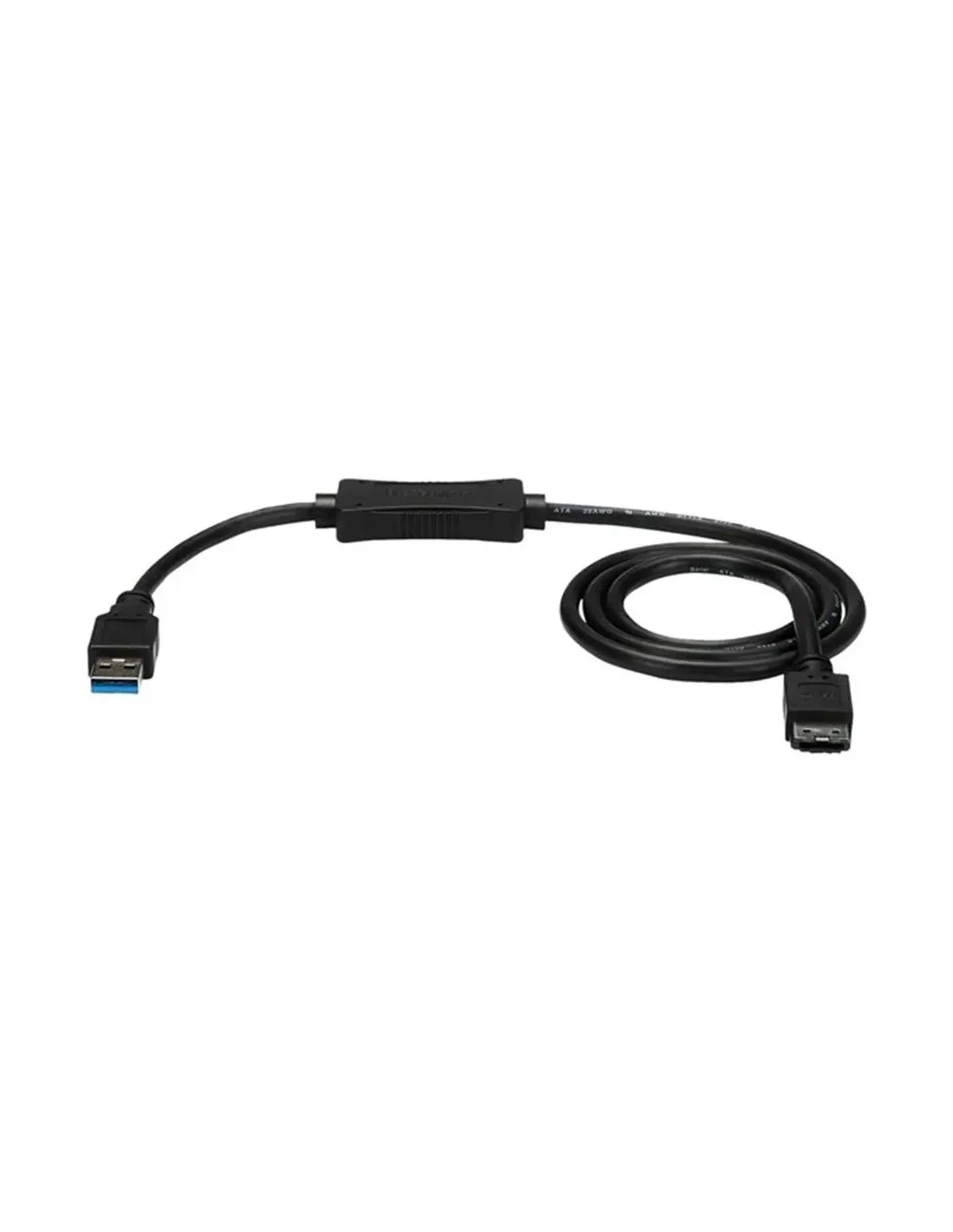 Características del StarTech.com Cable Adaptador USB 3.0 a eSATA de 91 cmEl adaptador StarTech.com USB 3.0 a eSATA es una solución práctica y eficiente para conectar discos duros HDD o unidades SSD a través de un puerto USB. Diseñado para usuarios que necesitan acceder a unidades SATA externas con rapidez, este adaptador ofrece transferencias de alta velocidad de hasta 6 Gbps en un formato compacto y fácil de usar.Conectividad rápida y versátilGracias a su interfaz USB 3.0 y conexión eSATA de 6 Gb/s, este adaptador permite una comunicación fluida entre el equipo y la unidad de almacenamiento. Es ideal para tareas como copias de seguridad, recuperación de datos o transferencia de archivos de gran tamaño.Interfaz USB 3.0 con conector Tipo A de 9 clavijasPuerto eSATA compatible con SATA III (6 Gb/s)Velocidad de transferencia de hasta 6 Gbit/sCompatibilidad con HDD y SSDEste adaptador está preparado para trabajar con una amplia variedad de dispositivos de almacenamiento, incluyendo discos duros tradicionales y unidades de estado sólido. Su controlador integrado garantiza un funcionamiento estable y fiable.Compatible con HDD y SSDSoporte para 1 dispositivo de almacenamientoControlador integrado ASMedia ASM1153EDiseño compacto con cable integradoSu formato compacto con cable USB integrado facilita su transporte y uso en cualquier entorno. Con una longitud de aproximadamente 80 cm, ofrece flexibilidad para conectar dispositivos sin necesidad de accesorios adicionales.Cable USB integrado de 91 cmDiseño ligero y fácil de transportarDimensiones: 2,5 cm x 1 cmFuncionamiento fiable en diferentes entornosDiseñado para un uso seguro y continuo, este adaptador cumple con normativas internacionales y soporta un amplio rango de condiciones ambientales, asegurando un rendimiento estable.Temperatura de funcionamiento: 0 °C a 60 °CHumedad operativa: 40% - 85%Certificaciones: FCC, RoHSOtras especificacionesTipo de dispositivo: Controlador de almacenamiento externoBus del host: USB 3.0Interfaces: eSATA 6 Gb/sPeso: 137 g