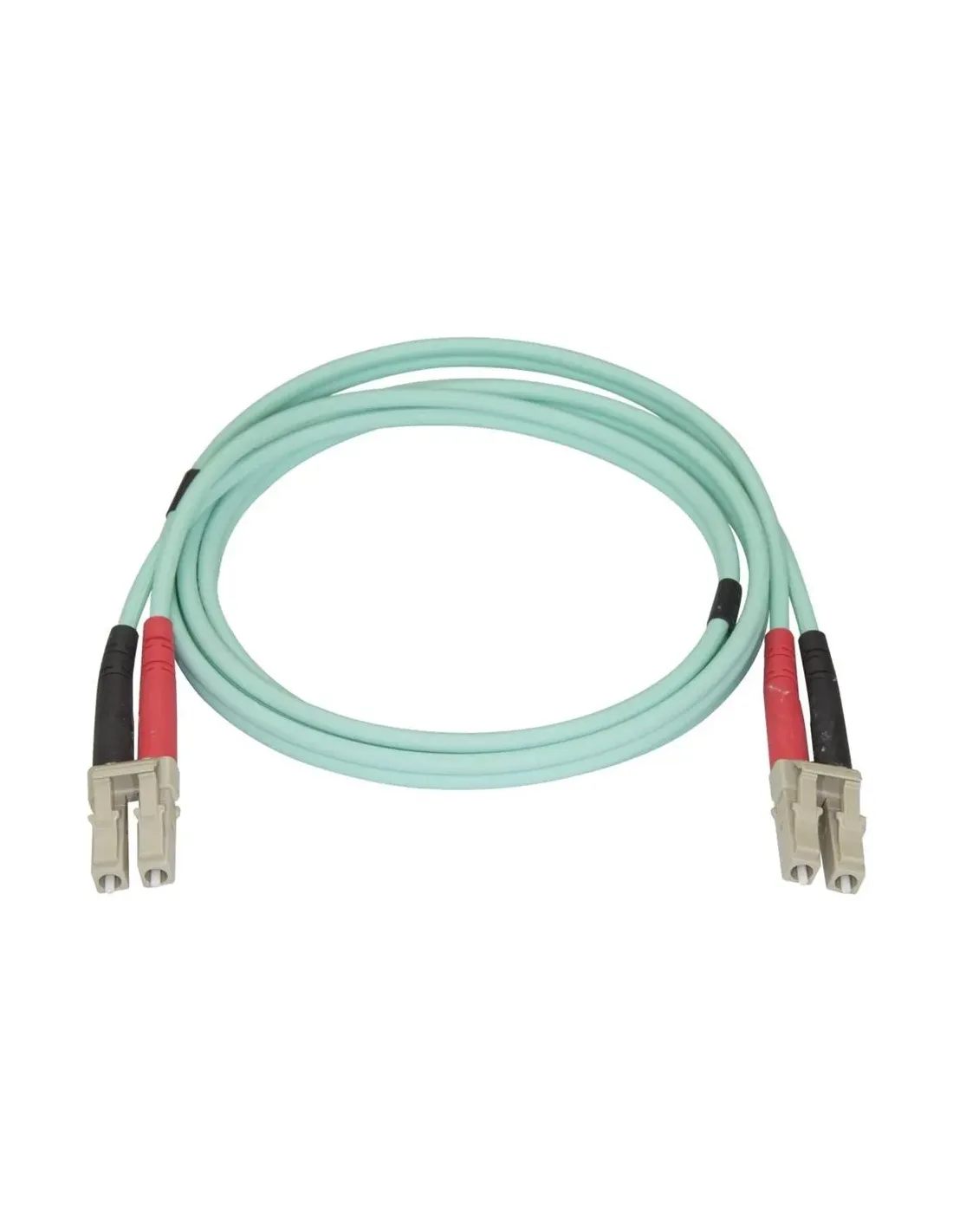 Características del cable de fibra óptica StarTech.com Dúplex Multimodo OM4 LC 1m AguamarinaEl cable de fibra óptica StarTech.com OM4 dúplex multimodo de 1 metro está diseñado para ofrecer conexiones de red de alta velocidad y gran fiabilidad en entornos profesionales, centros de datos y redes empresariales. Gracias a su fibra multimodal optimizada para láser (LOMMF), permite una transmisión eficiente de datos con baja pérdida de señal. Su cubierta LSZH (Low Smoke Zero Halogen) mejora la seguridad en instalaciones interiores al reducir la emisión de humo y gases tóxicos en caso de incendio.Fibra óptica OM4 de alto rendimientoEste cable incorpora fibra multimodo OM4, diseñada para redes de alta velocidad que requieren un rendimiento estable y eficiente. Su diámetro de núcleo/revestimiento de 50/125 micras permite una transmisión de datos optimizada en infraestructuras modernas de comunicaciones.Tipo de fibra óptica: modo múltipleEstándar de cable: OM4Fibra multimodal optimizada para láser (LOMMF)Diámetro del núcleo / revestimiento: 50/125 micrasConectividad LC dúplex para redes profesionalesEl cable dispone de conectores LC multimodo en ambos extremos, una de las conexiones más utilizadas en redes de fibra óptica actuales. Su configuración dúplex permite la transmisión simultánea de datos en ambas direcciones, ideal para switches, routers, paneles de parcheo y equipos de red.Conector 1: 2 x LC multimodo machoConector 2: 2 x LC multimodo machoTecnología de conexión: fibra óptica dúplexCubierta segura y preparada para instalaciones profesionalesLa cubierta del cable está fabricada con material LSZH (Low Smoke Zero Halogen), que reduce la emisión de humos y gases nocivos en caso de combustión. Esto lo convierte en una opción adecuada para instalaciones en oficinas, edificios públicos o centros de datos, donde la seguridad del cableado es un factor importante.Material del revestimiento: LSZH (libre de halógenos y baja emisión de humo)Color del cable: aguamarinaDiseño optimizado para entornos profesionalesLongitud práctica para conexiones de redCon una longitud de 1 metro, este cable es ideal para conexiones cortas en racks, armarios de red o paneles de parcheo, facilitando una instalación ordenada y eficiente dentro de infraestructuras de red de alta densidad.Longitud del cable: 1 mTipo de cable: cable de red de fibra ópticaDiseño compacto para instalaciones de corta distancia