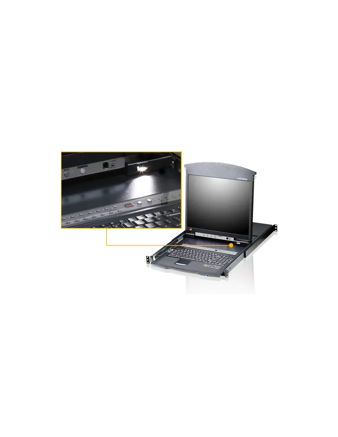 ATEN KL1508AN. Diagonal de la pantalla: 48,3 cm (19"), Pantalla: LCD. Tipo de puerto de teclado: USB, PS/2, Tipo de puerto de ratón: USB, PS/2, Tipo de puerto de vídeo: VGA. Idioma del teclado: Español, Diseño de teclado: QWERTY. Consumo energético: 23 W. Ancho: 701,2 mm, Altura: 44 mm, Profundidad: 480 mm