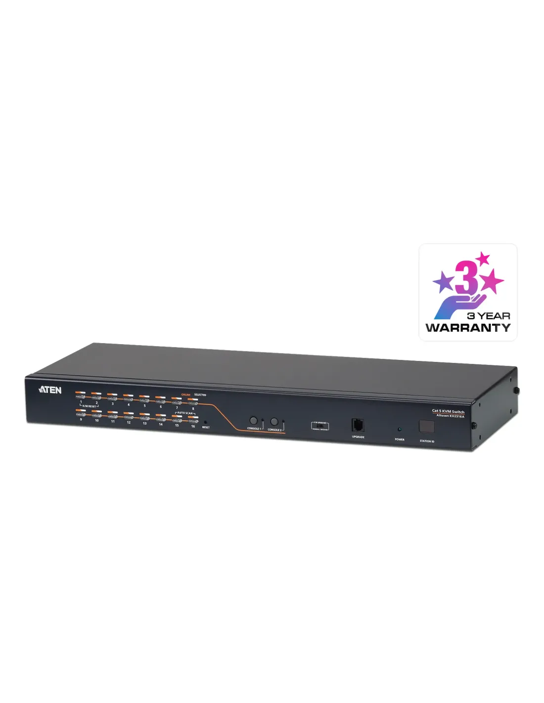 ATEN Switch KVM Cat 5 multi-interfaz de 16 puertos con 2 consolas, 1920 x 1200 Pixeles, Ethernet, WUXGA, Negro