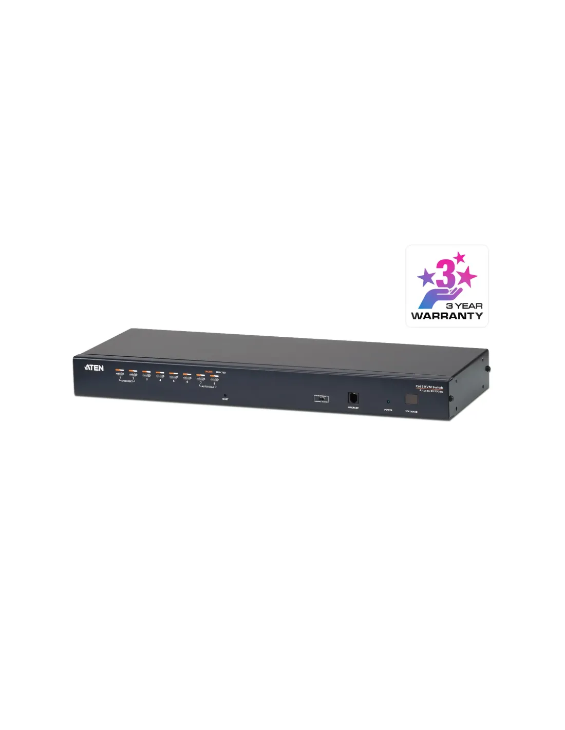 ATEN Switch KVM Cat 5 multi-interfaz de 8 puertos, 1920 x 1200 Pixeles, Ethernet, WUXGA, 5,1 W, Negro