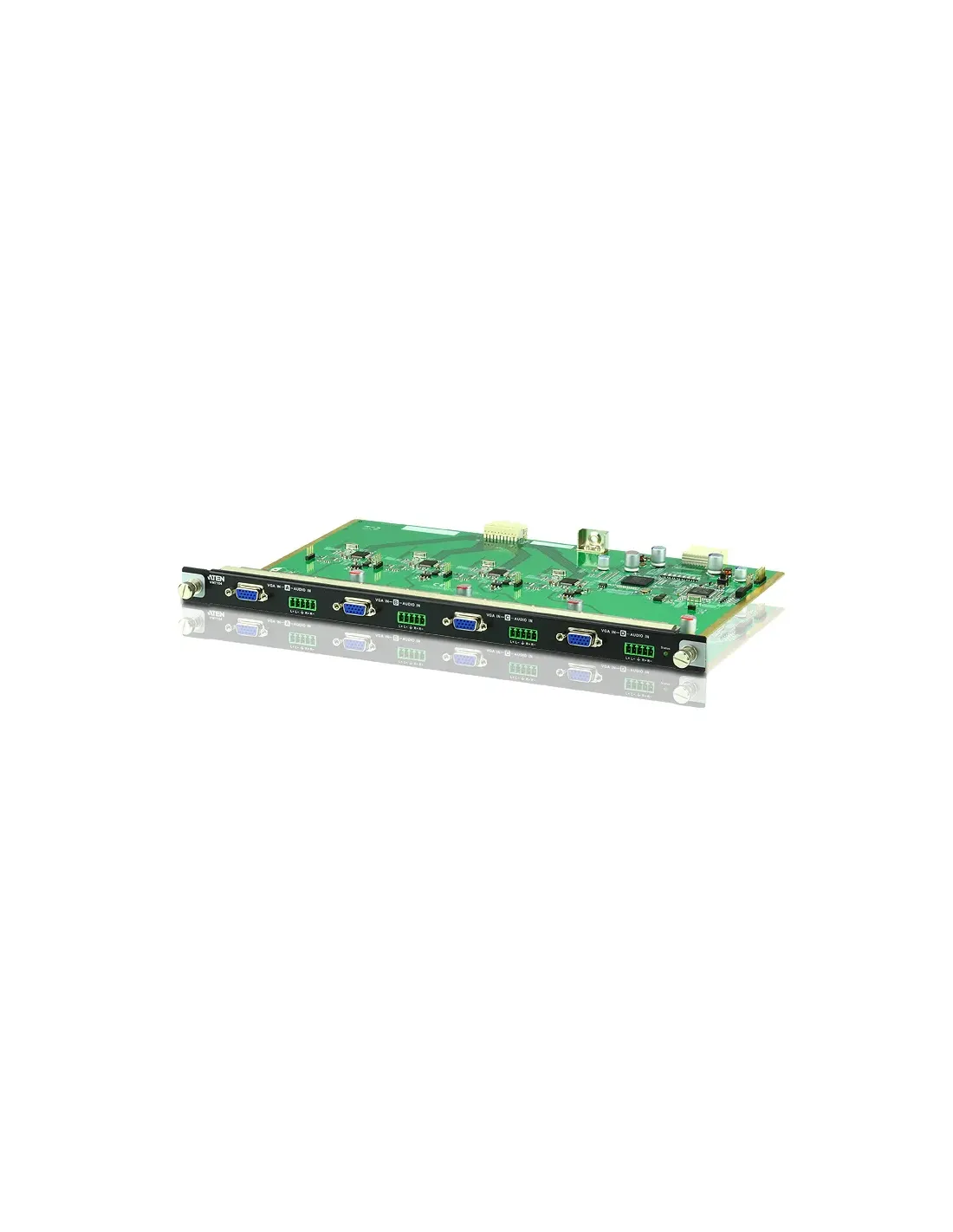 ATEN Tarjeta de entrada VGA de 4 puertos. Tipo de puerto de vídeo: VGA. Material: Metal, Color del producto: Negro, Verde, Formatos gráficos soportados: 1920 x 1200 (WUXGA). Consumo energético: 7,1 W. Ancho: 328 mm, Altura: 228 mm, Peso: 560 g