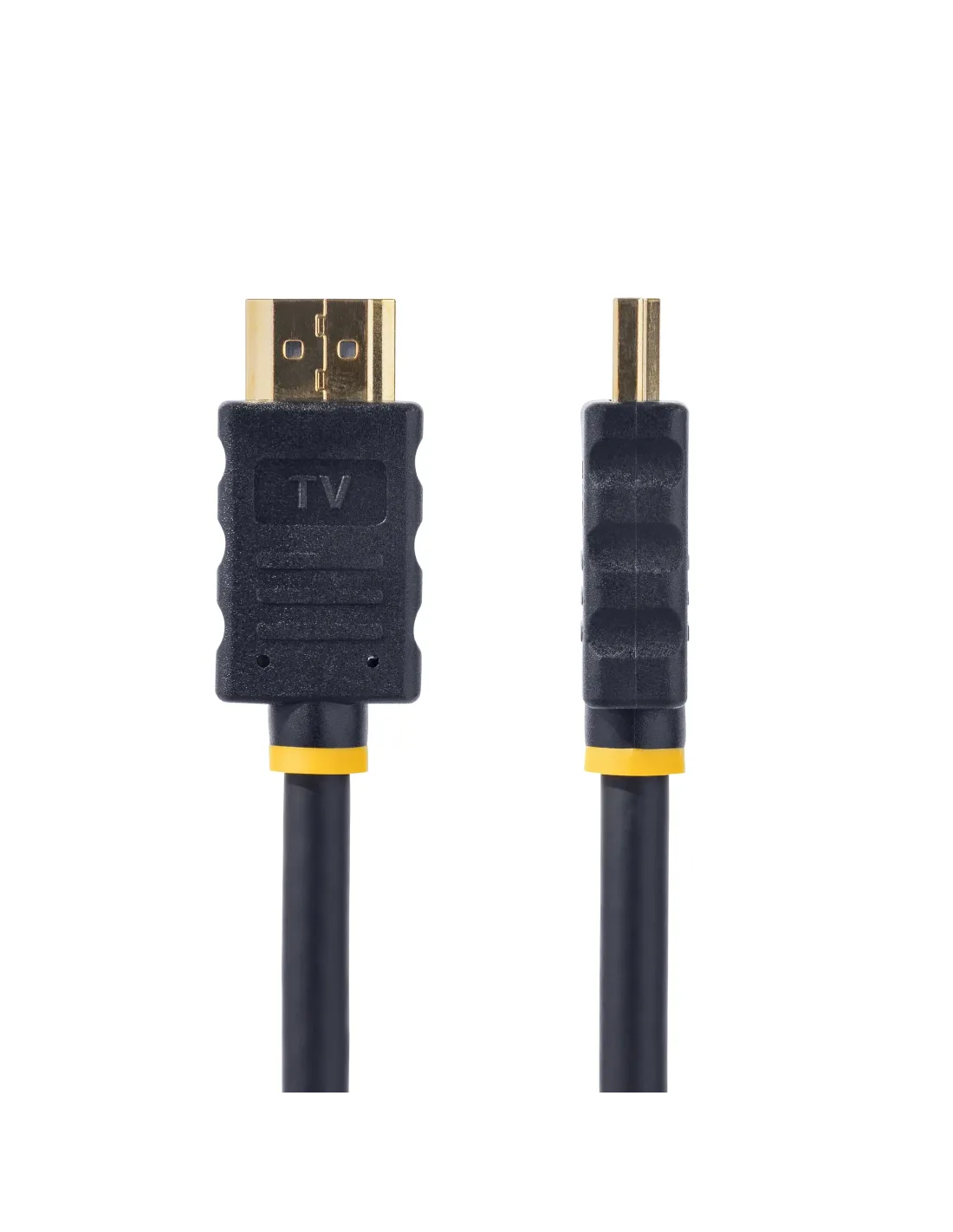 El cable HDMI® activo de alta velocidad de 5m cuenta con un amplificador de señal activo incorporado para lograr una distancia de conexión de hasta 5m entre sus dispositivos habilitados para HDMI, sin pérdida de señal.