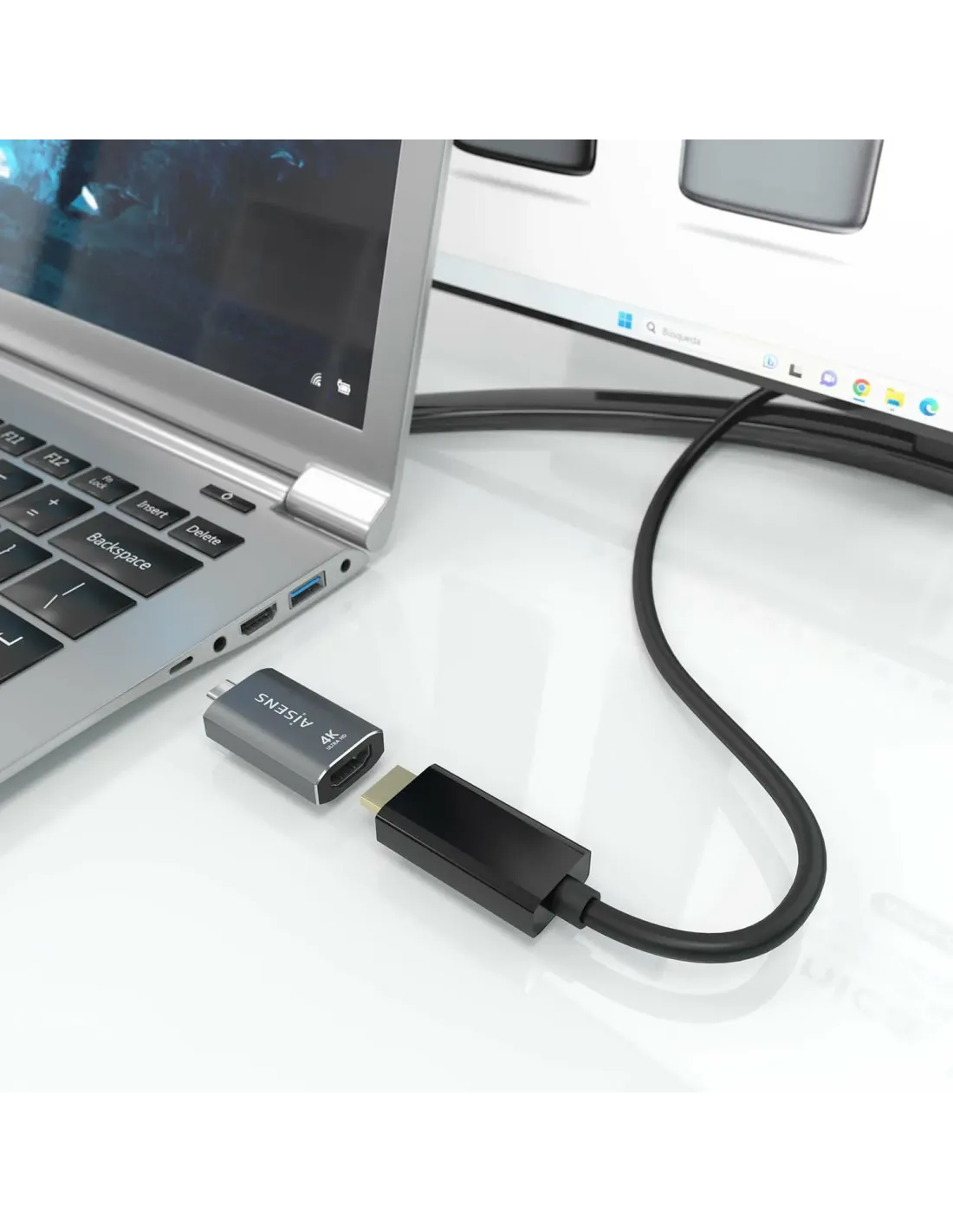 AISENS® ? Adaptador Conversor Aluminio USB-C a HDMU 4K@60Hz, USB-C/M-HDMI/H, GrisConversor con carcasa de aluminio USB-C a HDMI 2.0, con conector USB-C macho en un extremo y HDMI 4K@60Hz hembra en el otroEl puerto HDMI soporta la resolución máxima 4Kx2K@60HZ(3840x2160p) y profundidad de color 48 bit/px. Retrocompatible con las especificaciones HDMI anteriores.No requiere software ni controladores, una solución totalmente plug and play