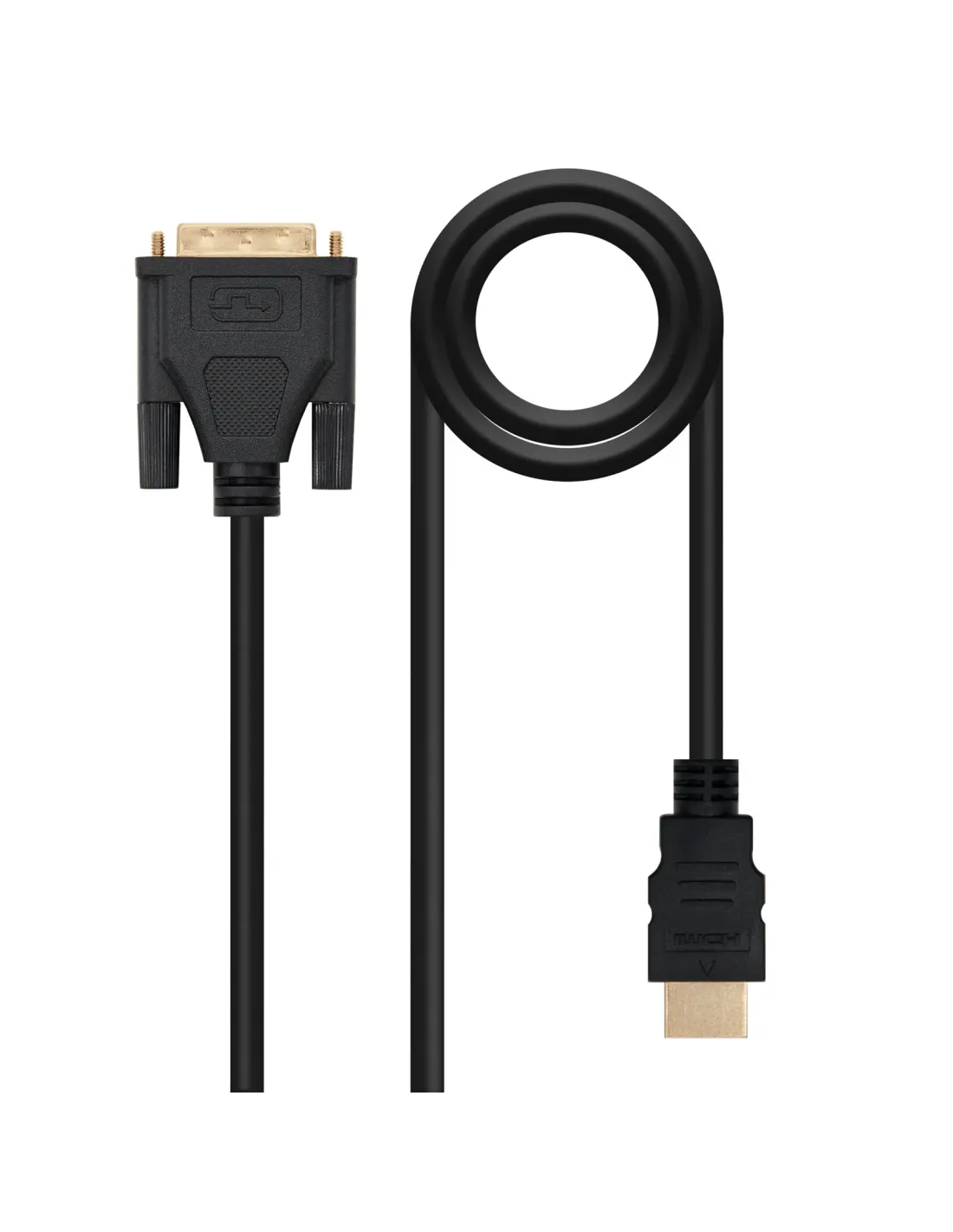 - Cable DVI a HDMI con conector tipo DVI 18+1 macho en un extremo y HDMI tipo A macho en el otro- Conector HDMI de alta calidad blindado en oro de 24K.- Múltiple apantallamiento formado por 128 hilos trenzados y lámina de aluminio para la máxima reducción de posibles interferencias. Fabricado con conductores de cobre (cobre OFC-Oxygen Free Copper- 99,99%) de alta calidad que garantiza la máxima calidad de transmisión.- Velocidades de transferencias de datos de hasta 5,1 Gb/s - Soporta resolución de hasta Full-HD 1080p