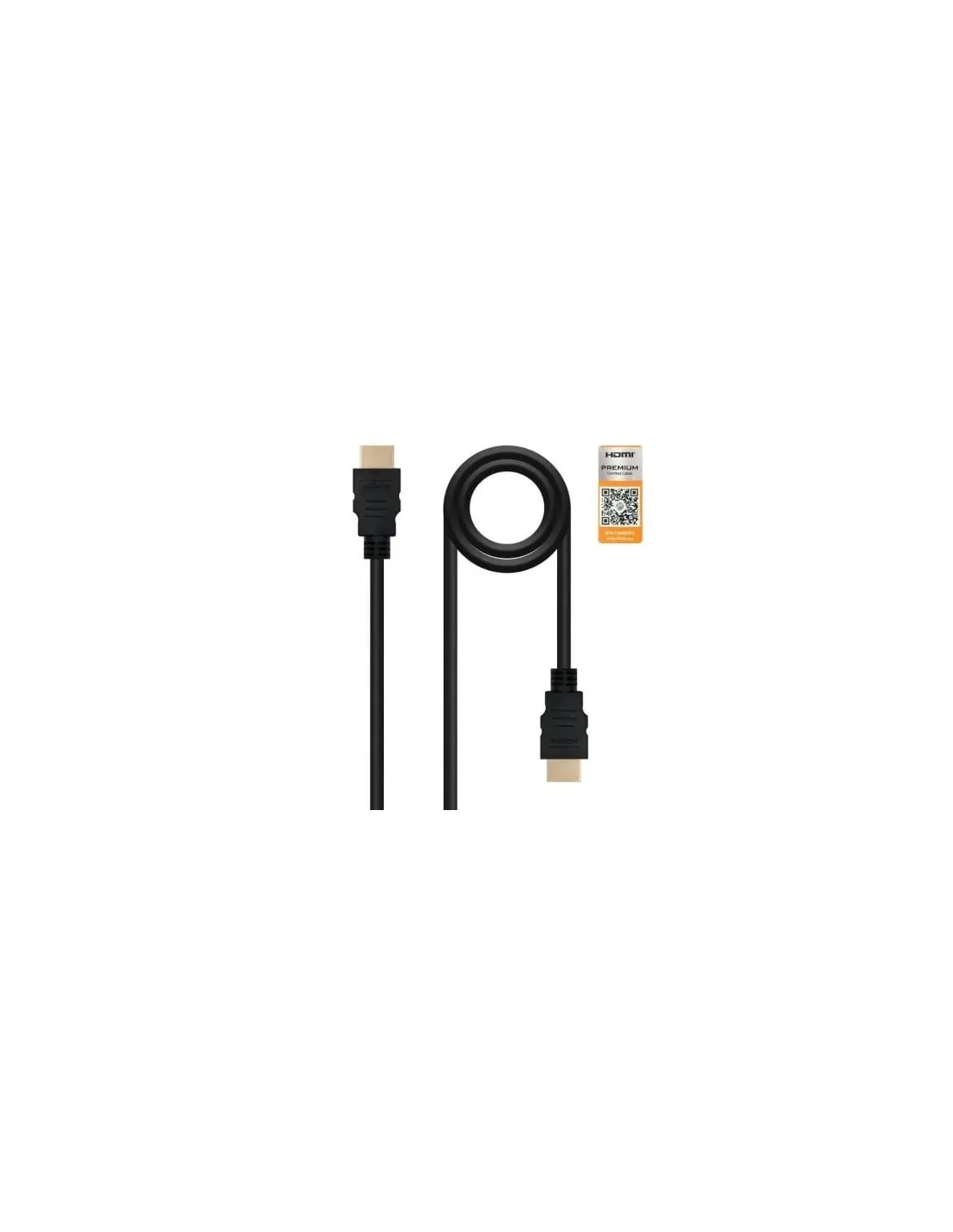 DESCRIPCIÓN:- Cable HDMI V2.0 premium alta velocidad con Ethernet con conector tipo A macho en ambos extremos- Conectores de alta calidad blindados en oro de 24K. Múltiple apantallamiento para la máxima reducción de posibles interferencias. Fabricado con conductores de cobre (cobre OFC-Oxygen Free Copper- 99,99% de pureza) de alta calidad que garantiza la máxima calidad de transmisión.- Este cable lleva la certificación Premium (Premium HDMI Cable Certification), esto garantiza que es un cable HDMI 2.0 auténtico y la máxima transmisión de señal entre los dispositivos y por lo tanto la mejor calidad en audio y vídeo.- Retrocompatible con las especificaciones HDMI anteriores y funciona con todos sus dispositivos HDMI existentes.- Ancho de banda hasta 18Gbps.- Soporta resoluciones de vídeo de hasta 4Kx2K@60Hz (3840x2160p) y profundidad de color 48 bit/px.- Compatible con HDR ("High Dynamic Range", alto rango dinámico), lo cual ofrece relaciones de contraste más altas y colores más vivos. - Compatible con hasta 32 canales de audio digital no comprimido que ofrecen un sonido impecable.- Soporta funcionalidad de canal de retorno de audio.- Permite 3D sobre HDMI cuando se conecta a dispositivos HDMI.LONGITUD: 0.5 metrosCOLOR: NegroNORMATIVAS: RoHSTEST DE FUNCIONAMIENTO: 100% testado