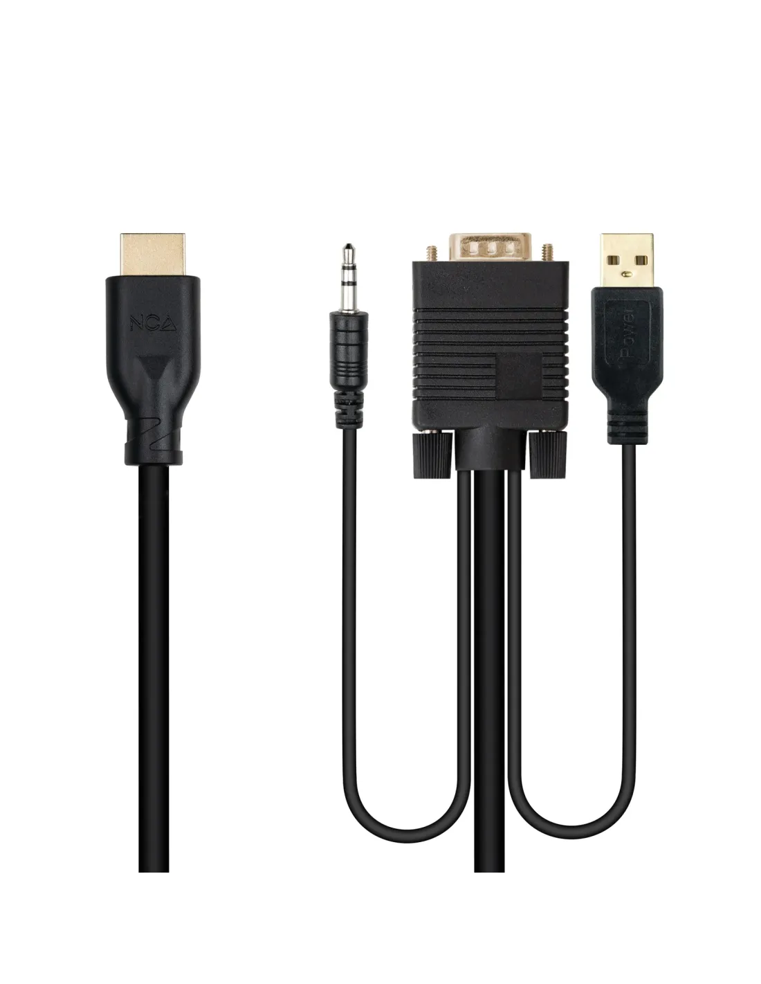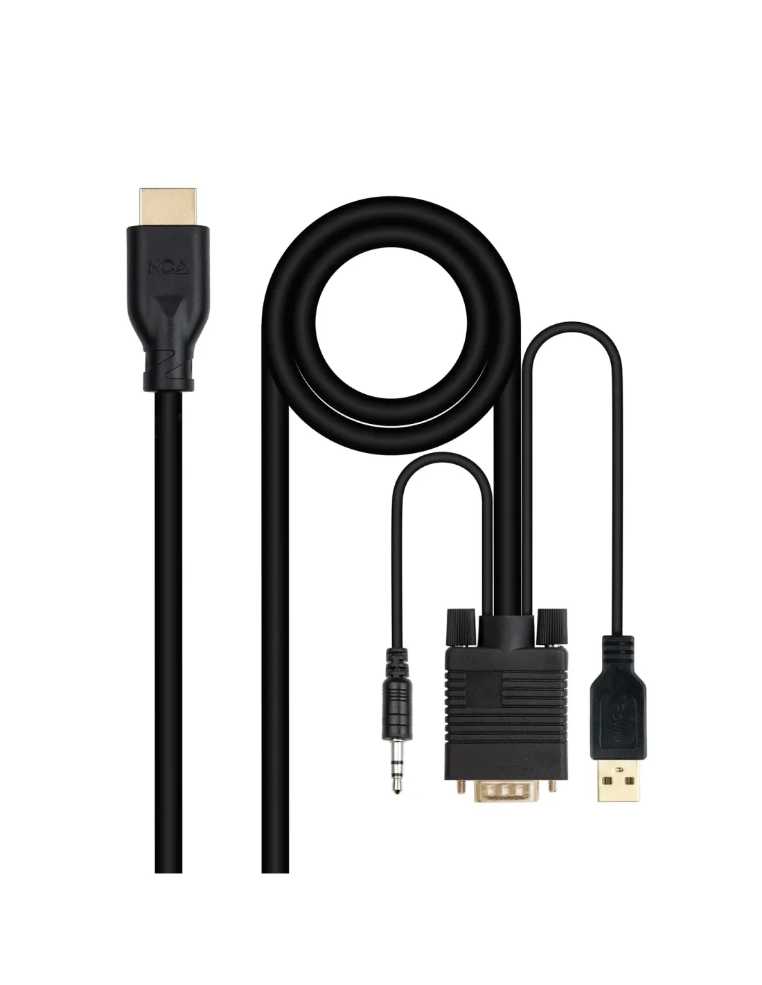 Cable Conversor Nanocable 10.15.4612/ HDMI Macho - VGA Macho/ Jack 3.5 Macho/ USB Macho/ 1.8m/ Negro