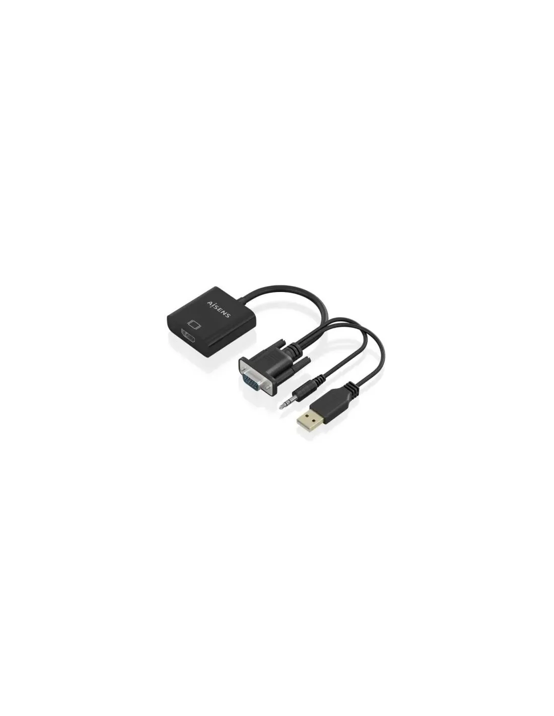 Marca Aisens Modelo A115-0872 Características - Tipo: convertidor SVGA y audio a HDMI - Conectores: HDMI hembra D-Sub HDB15 macho Jack 3,5 mm macho USB Tipo A macho (alimentacion opcional) - Funcion: conexion de pantalla HDMI a dispositivo con salida VGA - HDCP: compatible con HDCP 1.1 - Ancho de banda HDMI: 165 MHz / 1,65 Gbps por canal (6,75 Gbps total) - Resolucion soportada: hasta 1080p - Instalacion: plug and play, no requiere drivers - Longitud del cable: 20 cm - Color: negro - Estandares: RoHS - Test de funcionamiento: 100% probado Dimensiones y peso - 16 x 12 x 3 cm - 63 g Fecha de revisión 19-01-2026 por IS